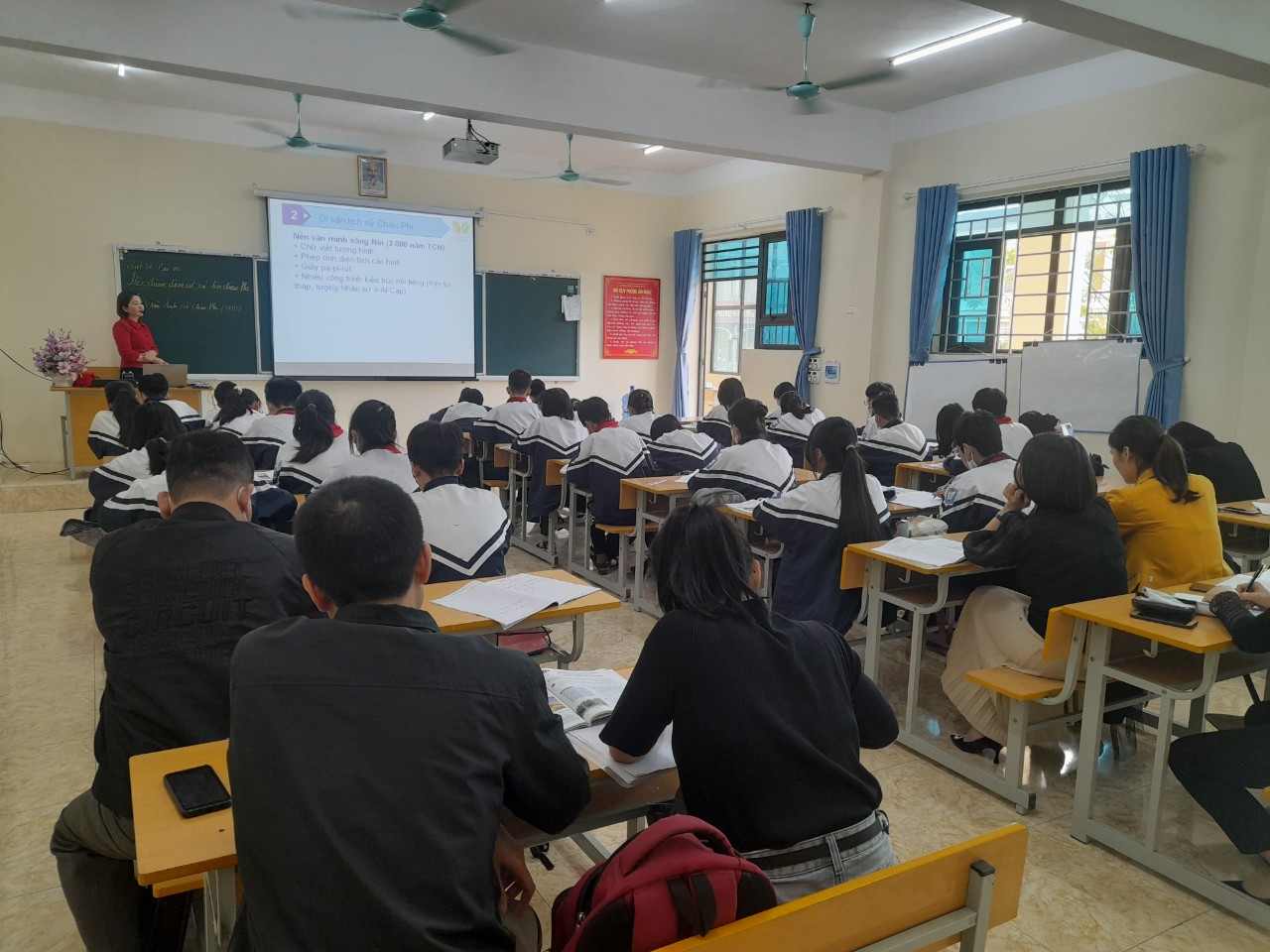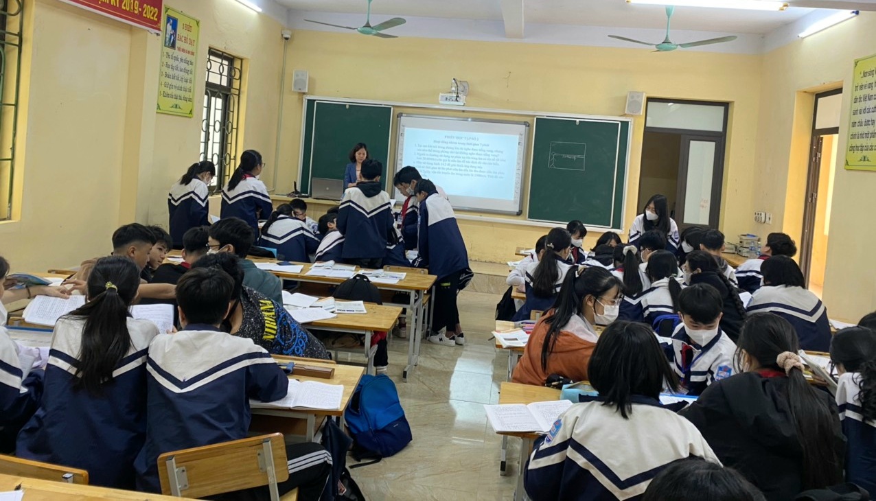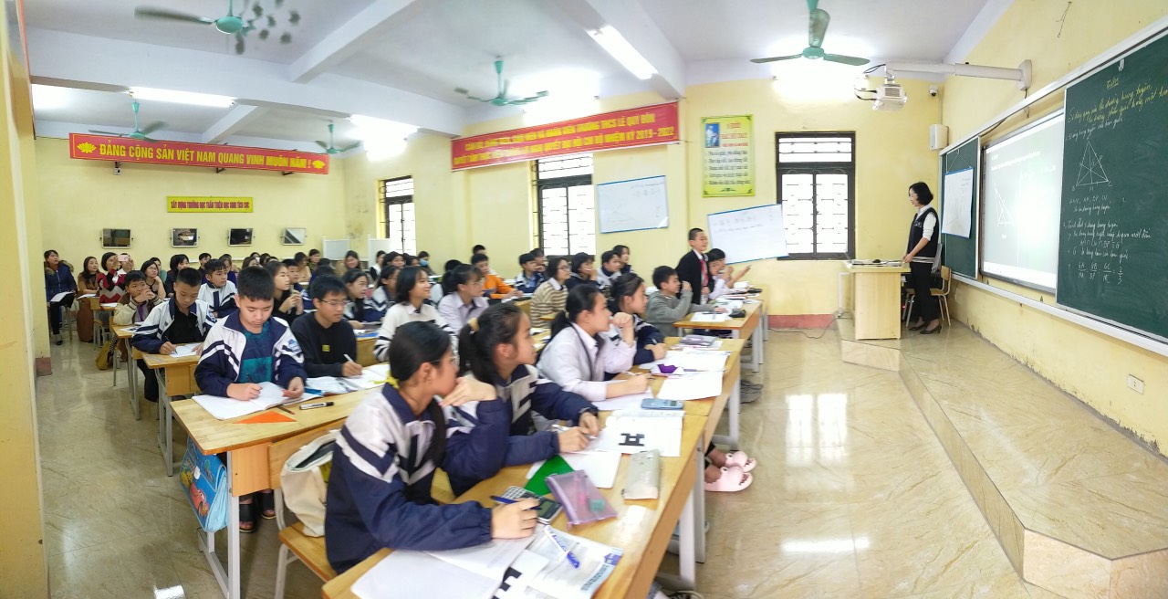 Trong các hoạt động trên, đặc biệt nổi bật là cuộc thi giáo viên dạy giỏi cấp trường dịp 3/2 chào mừng Đảng, mừng Xuân đã được tổ chức thành công tốt đẹp. Cuộc thi diễn ra trong tuần 23 từ ngày 20/02 đến 25/02/2023, trên tinh thần tự nguyện, GV đăng ký môn dạy, tiết dạy, lớp dạy. Các tiết dạy trong Hội thi đều có sự đầu tư chuẩn bị khá chu đáo từ khâu thiết kế rõ ràng, hợp lí về mục tiêu bài học; cấu trúc bài dạy lôgic; có sự liên hệ thực tế - tích hợp mở rộng hợp lí; Lời giảng truyền cảm; Thiết bị dạy học trực quan tương đối sinh động, đảm bảo đặc trưng bộ môn; đa dạng trong tổ chức các hoạt động học; phát huy hiệu quả CNTT,.. đã thể hiện sự đổi mới linh hoạt trong dạy học và kiểm tra đánh giá… Kết quả: 23/23 tiết dạy được công nhận, đánh giá xếp loại Giỏi, trong đó có 3 tiết được đánh giá là Xuất sắc ( Đ.c Trần Thị Hương Giang, Đào Thị Oanh, Nguyễn Thị Ánh).