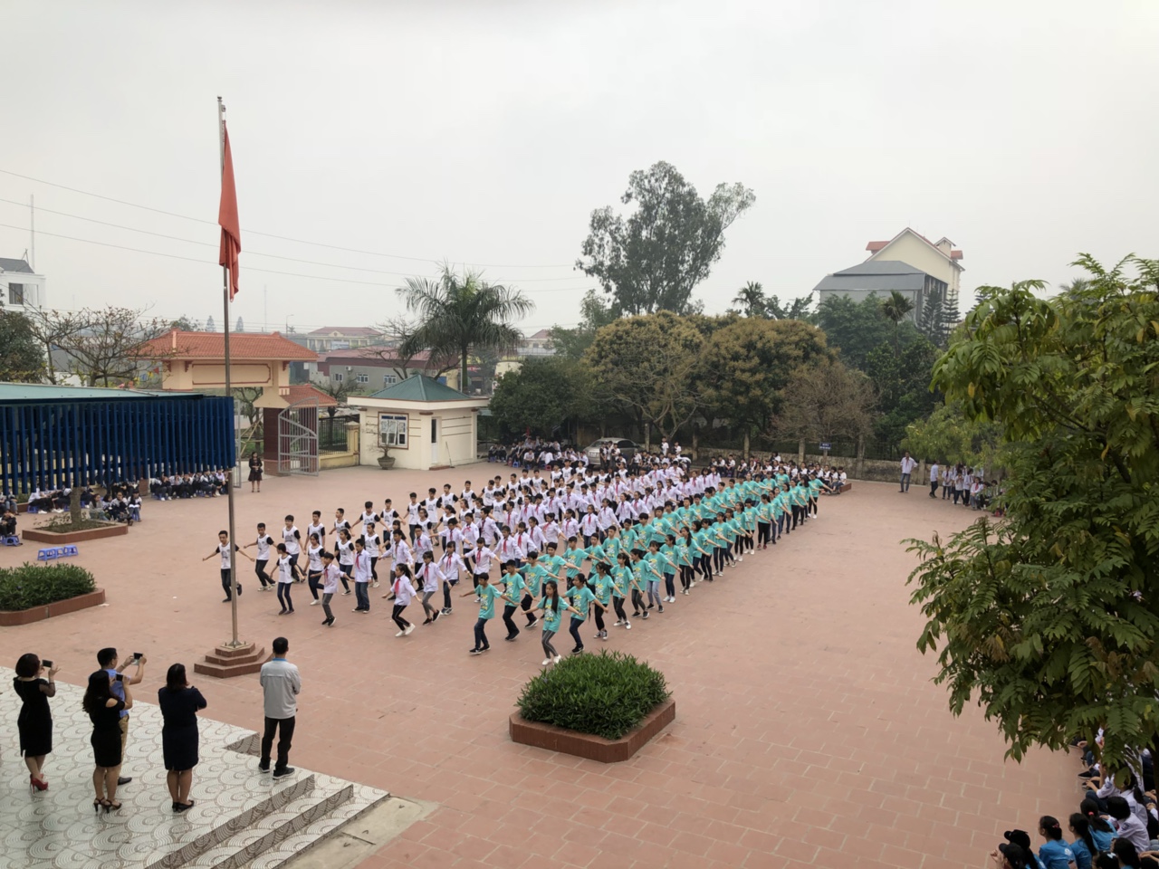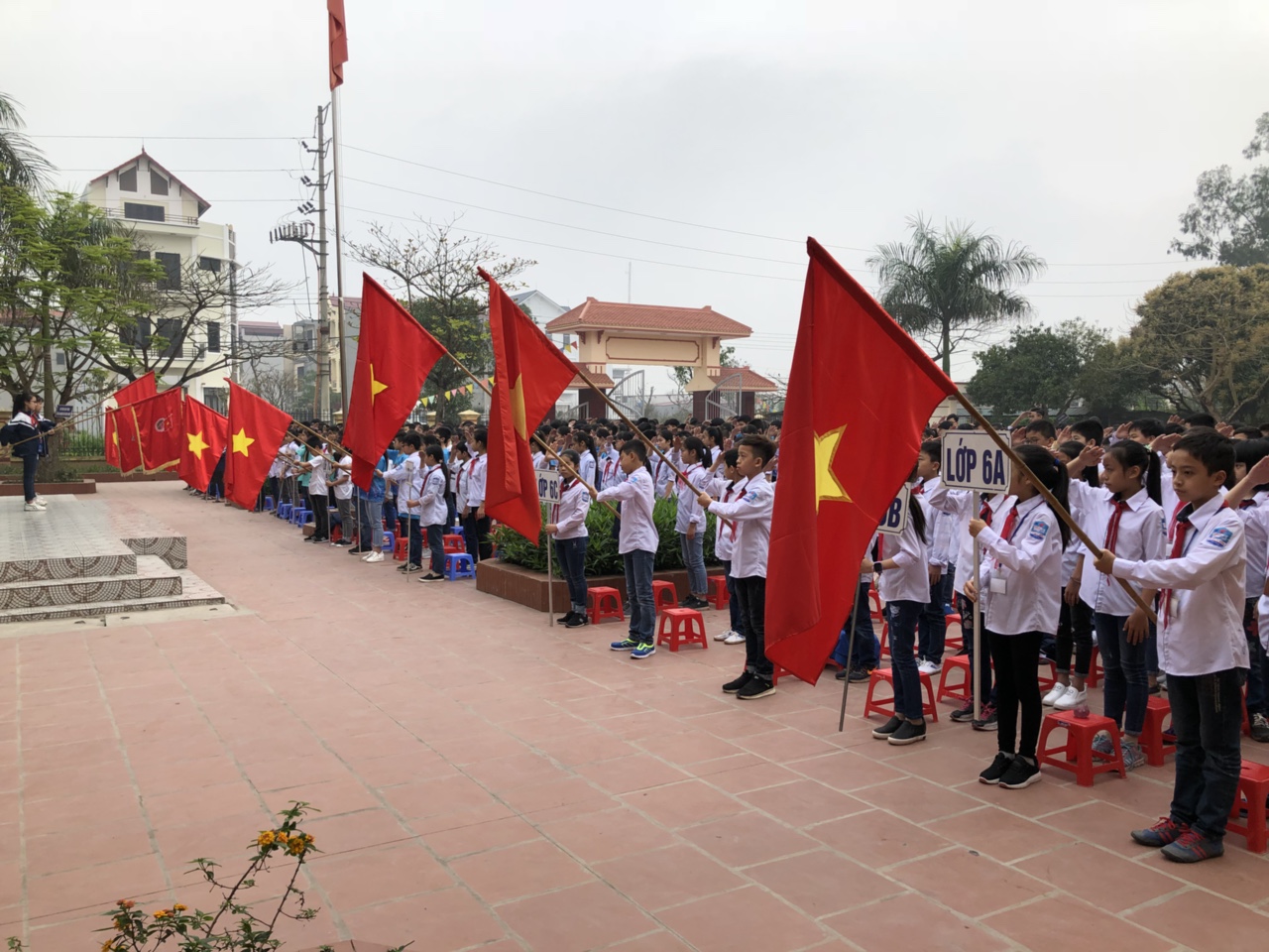 Tham dự buổi lễ năm nay, có các thầy cô trong Ban giám hiệu, Hội đồng nhà trường và hơn 500 em học sinh với trang phục chỉnh tề, tâm thế hứng khởi.