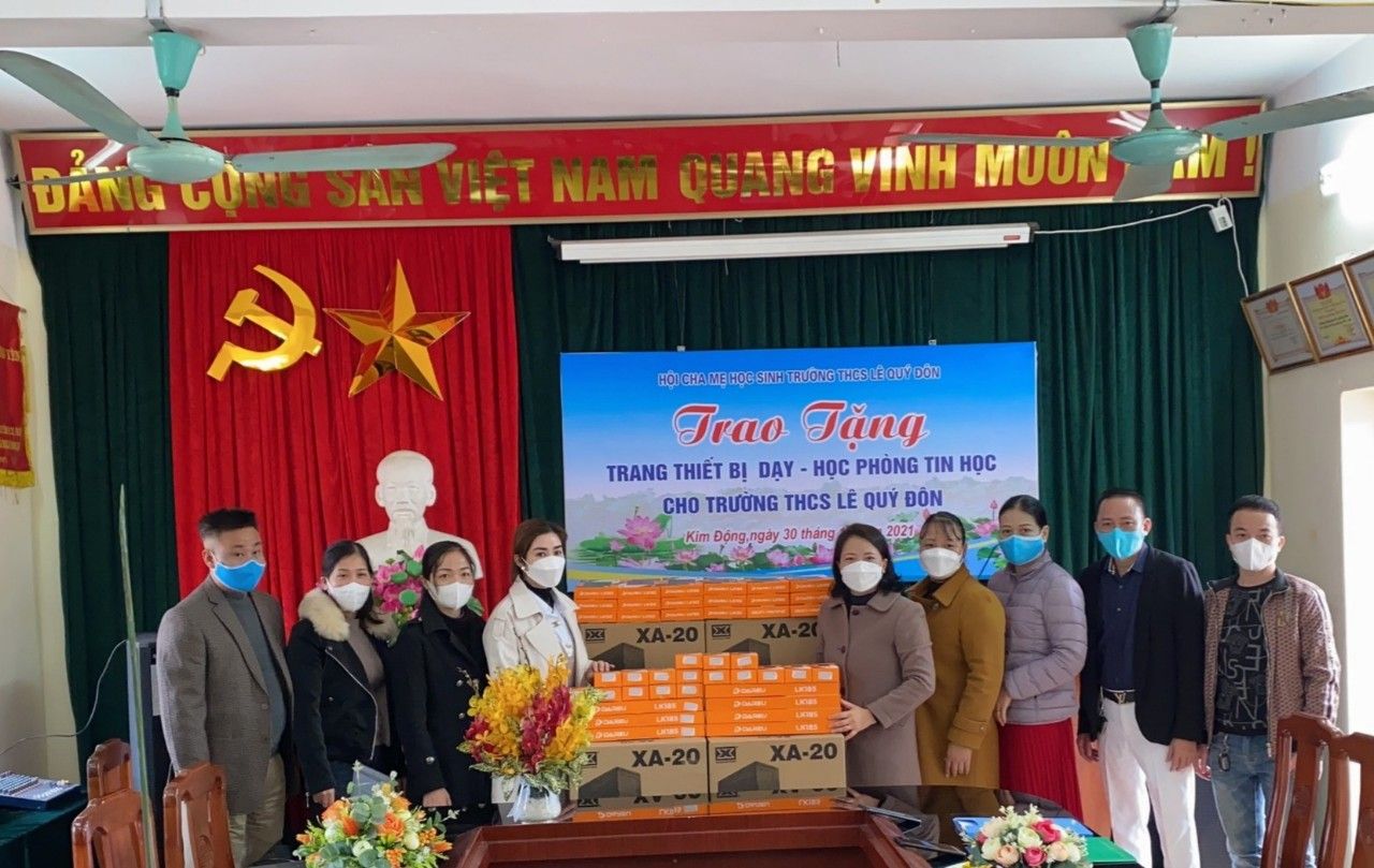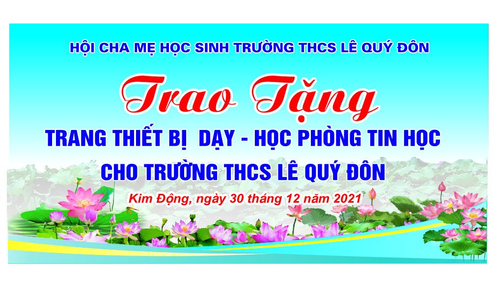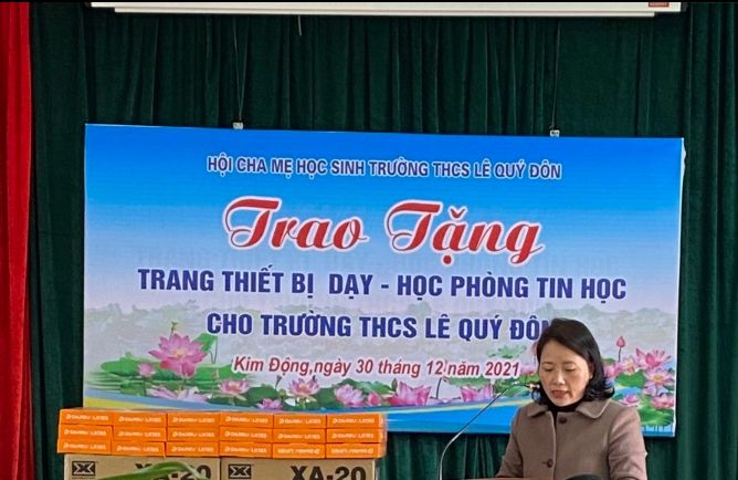 Sáng ngày 30 tháng 12 năm 2021, Trường THCS Lê Quý Đôn đã trang trọng tổ chức buổi lễ trao tặng các thiết bị dạy học phòng Tin học cho nhà trường từ Hội cha mẹ học sinh. Chương trình Hội nghị diễn ra ngắn gọn song vẫn đảm bảo tinh thần phòng chống dịch bệnh bằng hình thức trực tiếp và trực tuyến. Đại diện nhà trường, bà Cao Thị Ngân đọc Quyết định thành lập Ban vận động, tiếp nhận tài trợ thiết bị dạy - học phòng Tin học và Báo cáo tóm tắt quá trình thực hiện kế hoạch vận động tài trợ trang thiết bị dạy học học kì 1 năm học 2021- 2022. Đại diện Hội CMHS, bà Nguyễn Thị Mai Hương báo cáo kết quả thực hiện Quỹ vận động mua trang thiết thị dạy học cho phòng Tin học: Gói thiết bị gồm 27 cây máy tính mới, một số linh kiện gồm bàn phím và con chuột.