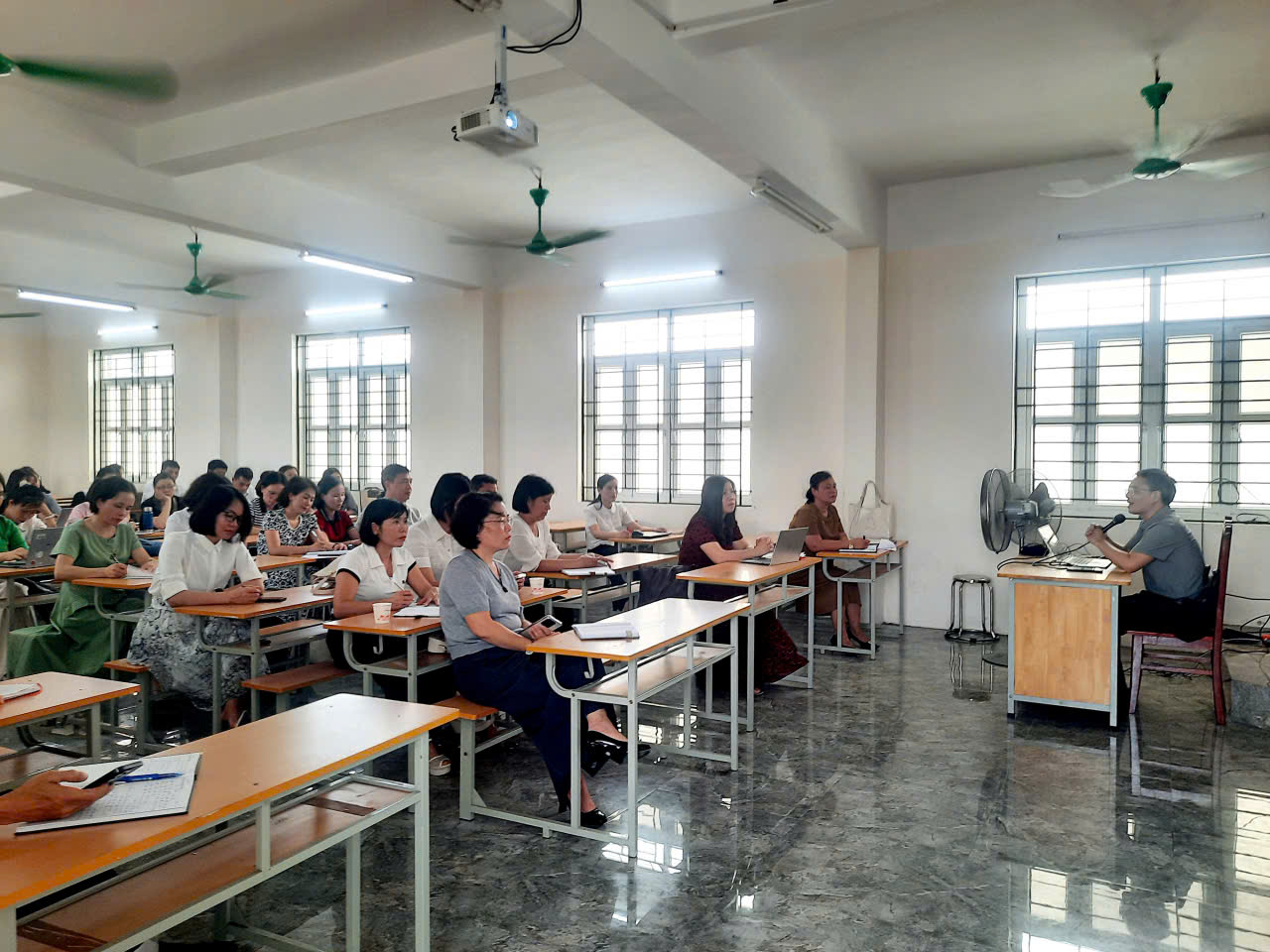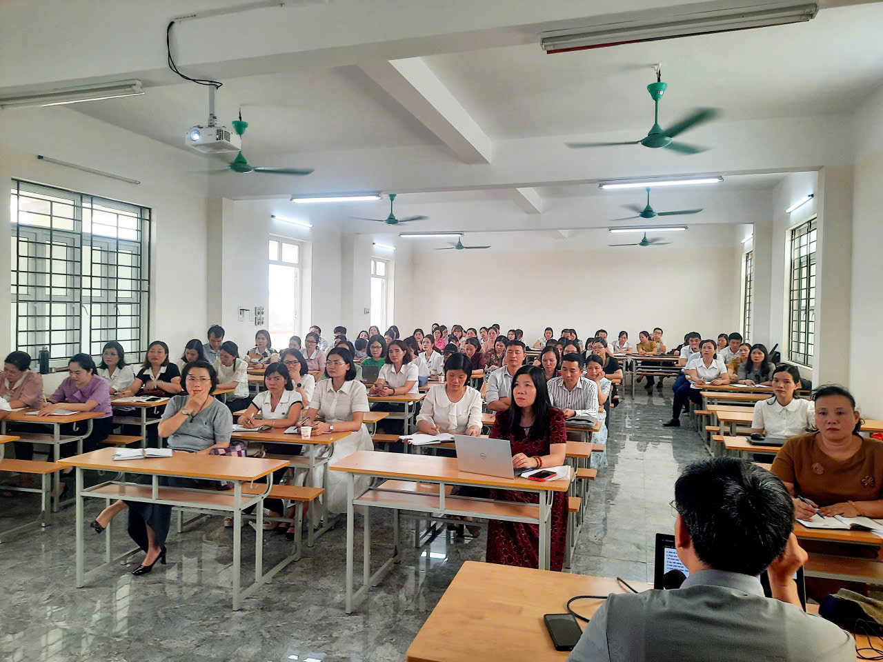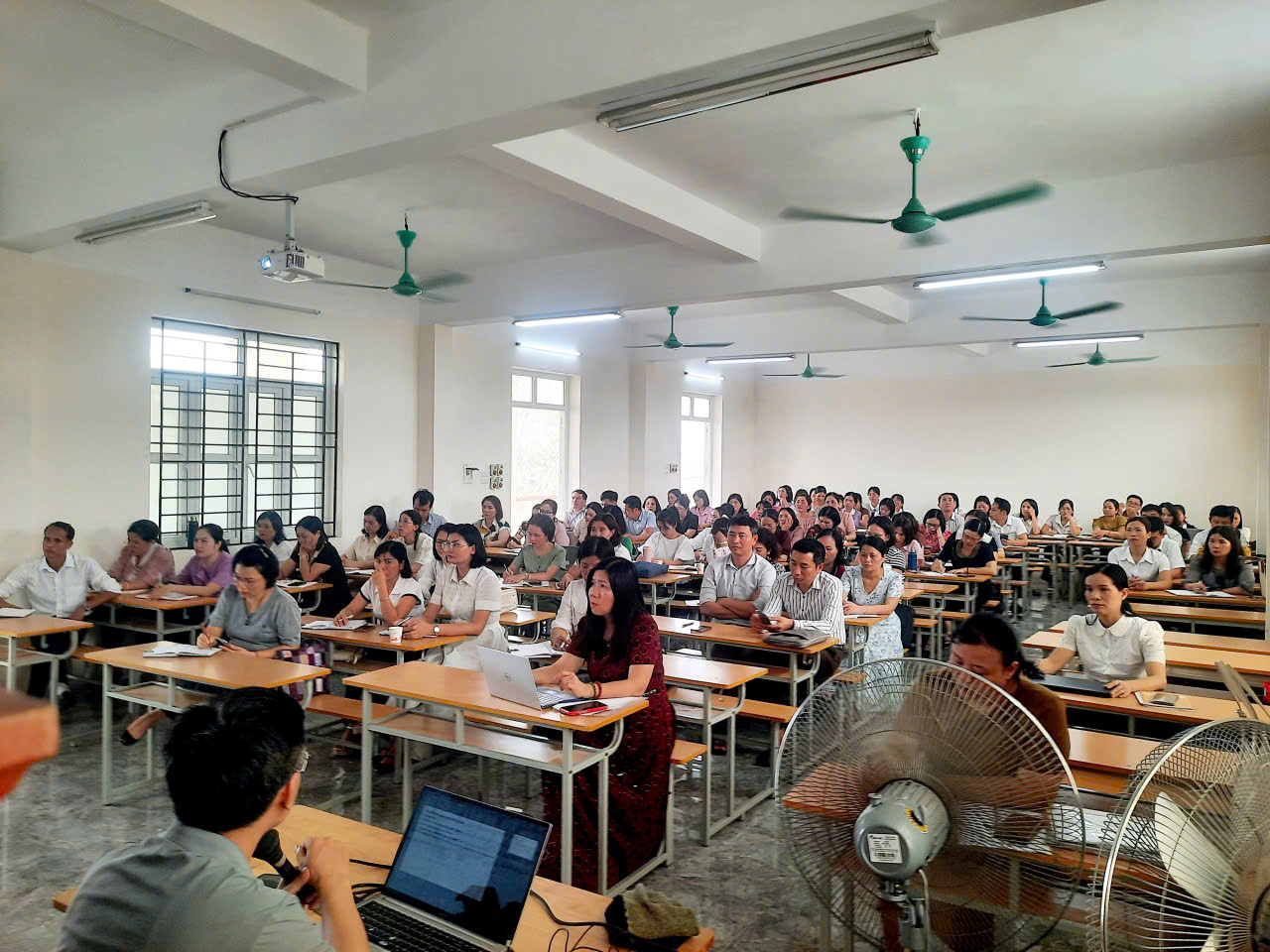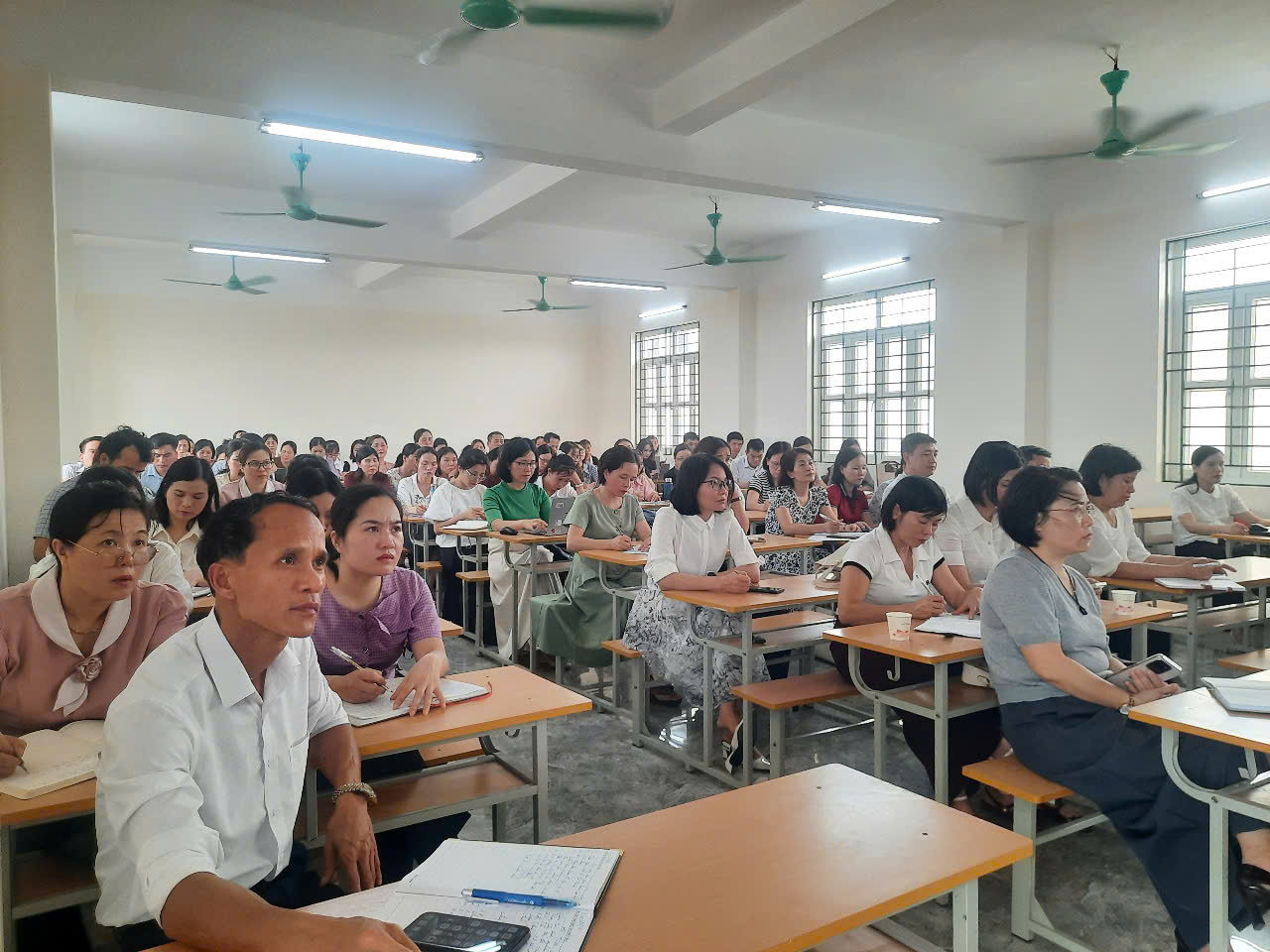 Buổi sinh hoạt có sự tham dự của cán bộ quản lý và giáo viên giảng dạy môn Ngữ văn, đặc biệt là giáo viên lớp 9 đến từ các trường trong cụm.