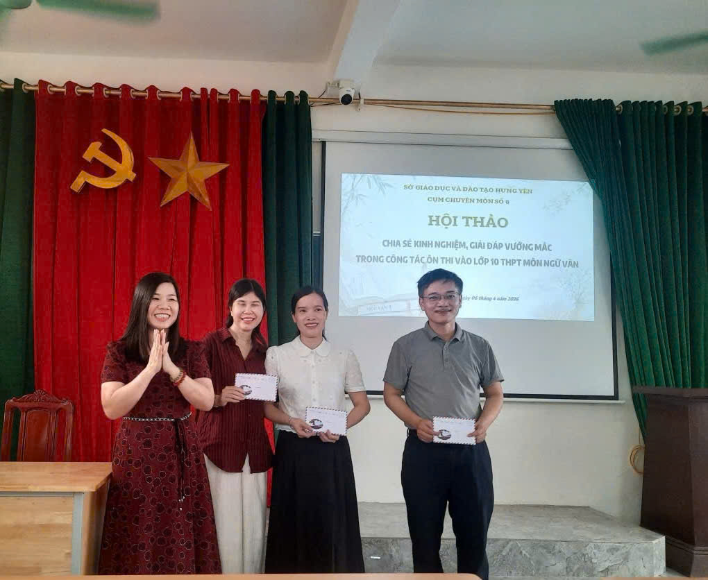 Thực hiện các văn bản chỉ đạo của Sở Giáo dục và Đào tạo về nhiệm vụ năm học 2025–2026, đồng thời triển khai kế hoạch hoạt động chuyên môn của Cụm chuyên môn số 6, chiều ngày 06/4/2026, tại Trường TH&THCS Hiệp Cường 2 (xã Hiệp Cường), Cụm chuyên môn số 6 bậc THCS đã tổ chức sinh hoạt chuyên môn lần 2 với chủ đề: “Chia sẻ kinh nghiệm, giải đáp vướng mắc trong công tác ôn thi vào lớp 10 THPT môn Ngữ văn”.