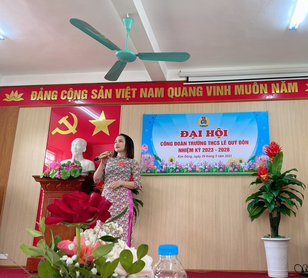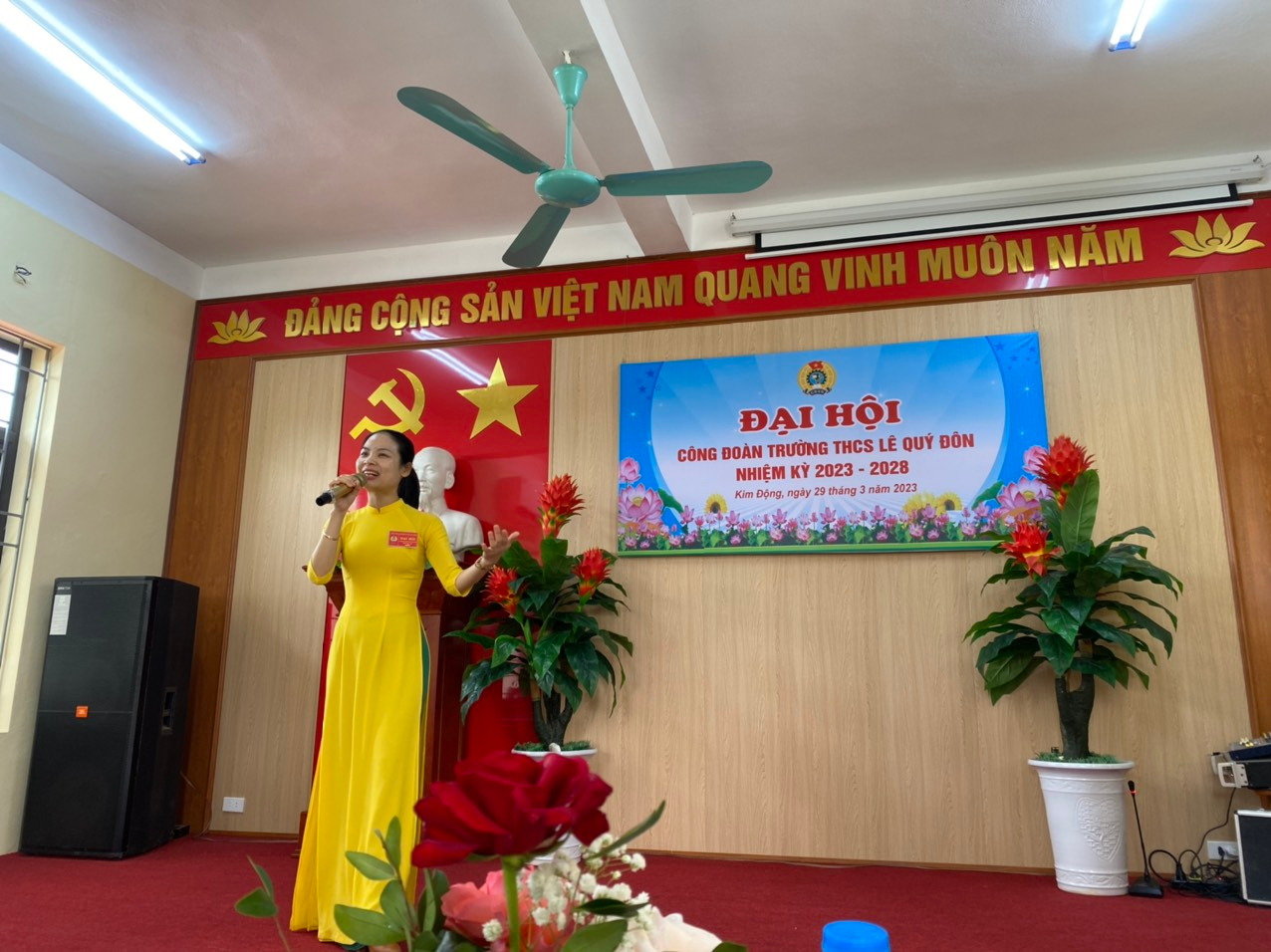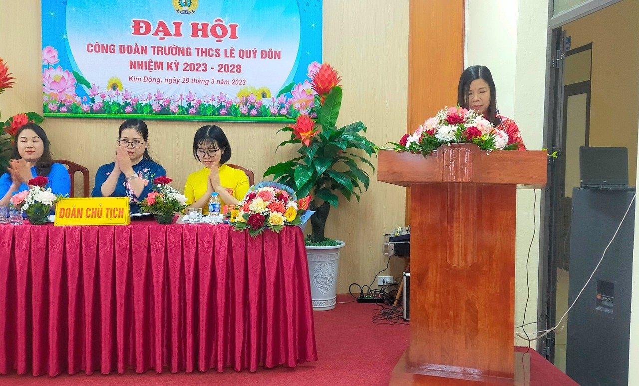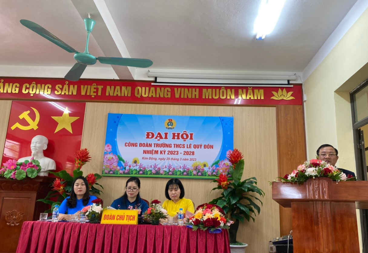 Được sự phê duyệt cho phép của Liên đoàn Lao động huyện Kim Động, Chi bộ trường THCS Lê Quý Đôn, ngày 29/3/2023, Công đoàn cơ sở Trường THCS Lê Quý Đôn, Kim Động, Hưng Yên long trọng tổ chức đại hội nhiệm kỳ 2023 – 2028. Dự và chỉ đạo đại hội có đồng chí Trần Văn Sớm, Huyện ủy viên, Chủ tịch Liên đoàn Lao động huyện. Các đồng chí trong Ban chi ủy, Ban giám hiệu nhà trường cùng toàn thể các đồng chí đoàn viên công đoàn nhà trường. Đại hội được đón chào những lời ca tiếng hát của đoàn đại biểu đến từ Liên đội Trường THCS Lê Quý Đôn, các đồng chí đoàn viên trong công đoàn trường. Đại hội nhận được lời chúc mừng động viên của Ban chi ủy – Ban Giám hiệu và của Hội Cha mẹ học sinh của trường.
