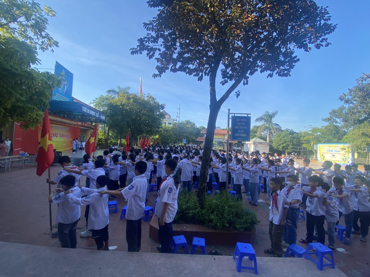 Thực hiện kế hoạch năm học về đổi mới giờ sinh hoạt dưới cờ đầu tuần, sáng thứ hai ngày 9/10/2023, sau lễ chào cờ, các em học sinh lớp 8A đã có chương trình “Chào tuần mới” hết sức ấn tượng. Với chủ đề “Sân trường sôi động”, chương trình đã khiến cả sân trường bùng nổ khi bạn MC khéo léo điều hành một loạt các trò chơi hấp dẫn, sôi nổi , thu hút tất cả học sinh các khối lớp tham gia. Vượt qua cảm giác e ngại ban đầu, các em học sinh hòa mình nhiệt tình vào các trò chơi. “ Chuyến xe bão táp” - trò chơi mở đầu đã huy động học sinh toàn trường nhập cuộc tạo nên bầu không khí vui vẻ, thoải mái, cởi mở khi tất cả các thanh viên trong đội cùng là người điều khiển chiếc xe về đích. Trò chơi “ Bạn thân ơi có hiểu tôi? ” với từng cặp học sinh tham gia không chỉ mang lại những tiếng cười sảng khoái mà còn giống như một chất keo giúp gắn kết hơn nữa tình bạn của những đôi bạn thân khi cùng tham gia trò chơi thú vị này. Rất nhiều cặp bạn thân đã hăng hái, nhiệt tình tham gia thử thách. Tập thể 8A cũng không quên thể hiện năng khiếu của mình qua tiết mục nhảy sôi động mang tên “ Sẽ chiến thắng ”