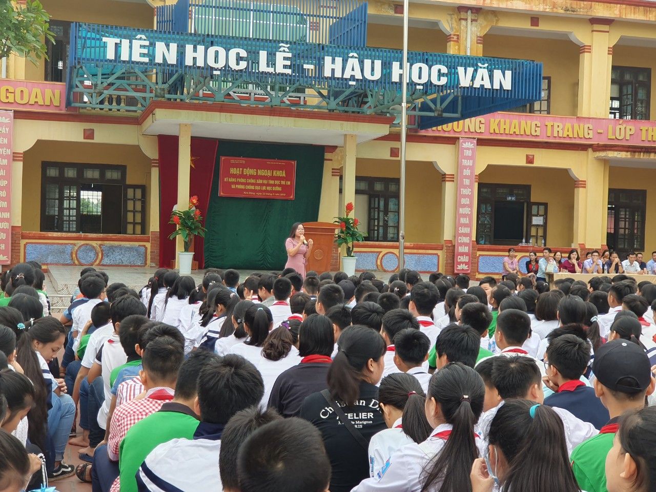 Sau phần giới thiệu đại biểu, nội dung chương trình của thày Lê Văn Trí, Phó HIệu trưởng nhà trường, bà .......- giám đốc Trung tâm giáo dục Kĩ năng sống JAVIKO lên nêu mục đích của buổi HĐNK ý nghĩa này.