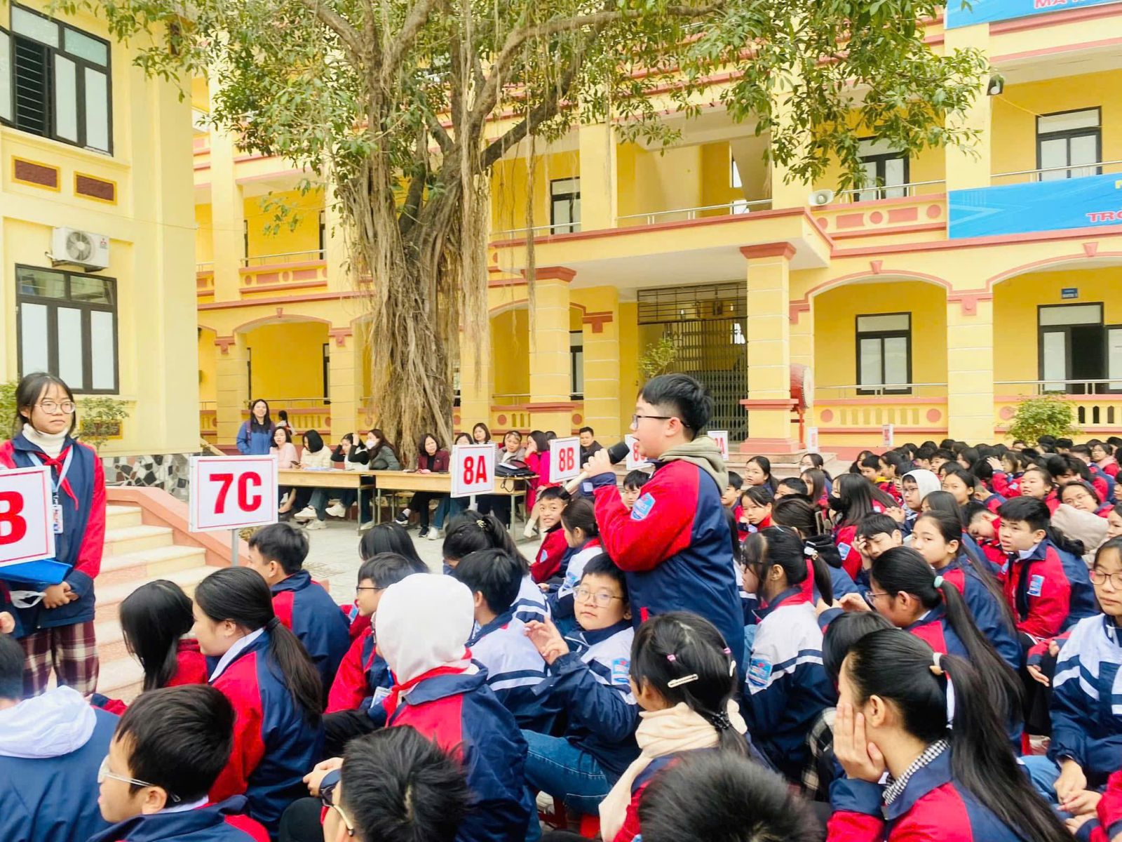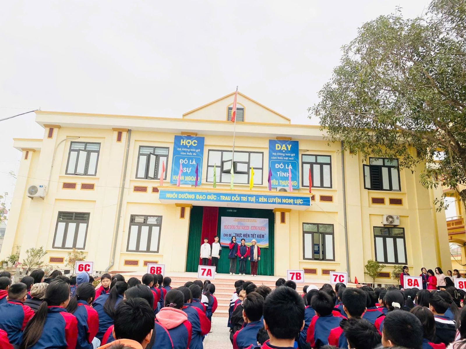 Lớp 7A đã đảm nhận vai trò chủ trì trong sự kiện này. Các bạn học sinh đã chuẩn bị chu đáo với những tiết mục trình bày sinh động, gần gũi và thực tiễn, giúp mọi người tham gia dễ dàng tiếp thu các thông điệp quan trọng về tiết kiệm. Những bài học về cách sử dụng tài nguyên một cách hiệu quả, quản lý chi tiêu hợp lý và ý nghĩa của việc tiết kiệm đã được truyền tải một cách sinh động qua các hoạt động tương tác.