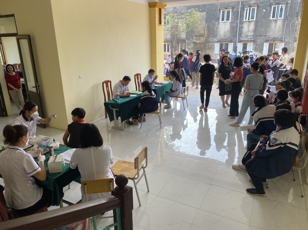 Thực hiện Công văn số 949/UBND-VP ngày 05/10/2022 của UBND huyện Kim Động về tăng cường phòng chống dịch bệnh covid-19 trên địa bàn huyện. Ngày 08/11/2022 trường THCS Lê Quý Đô phối hợp với trung tâm y tế huyện Kim Động tổ chức tiêm phòng vacxin phòng chống dịch covid 19 cho các em học sinh của nhà trường chưa tiêm mũi 1, mũi 2, mũi 3. Sau đây là một số hình ảnh của buổi tiêm.