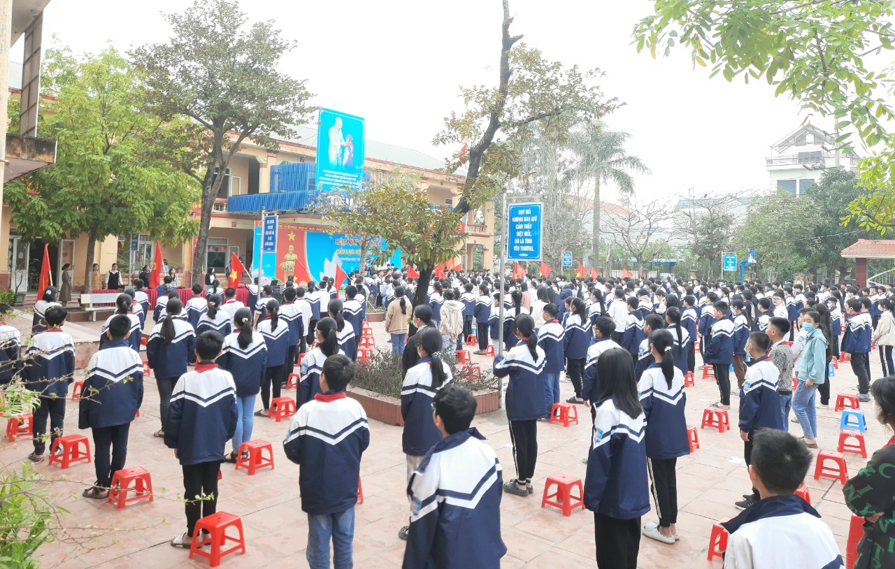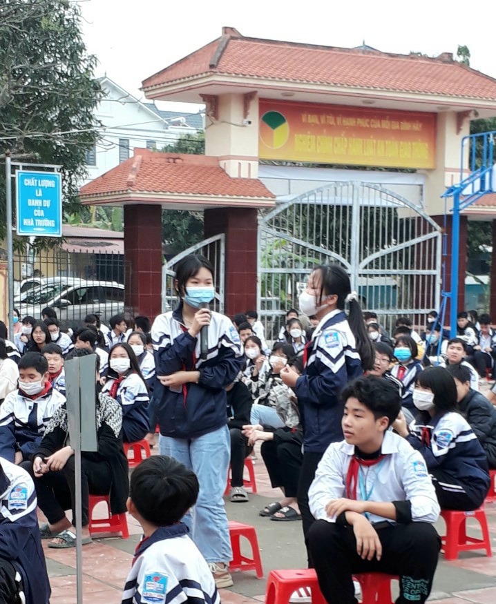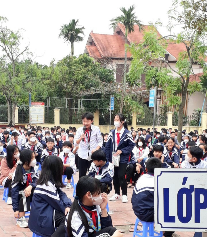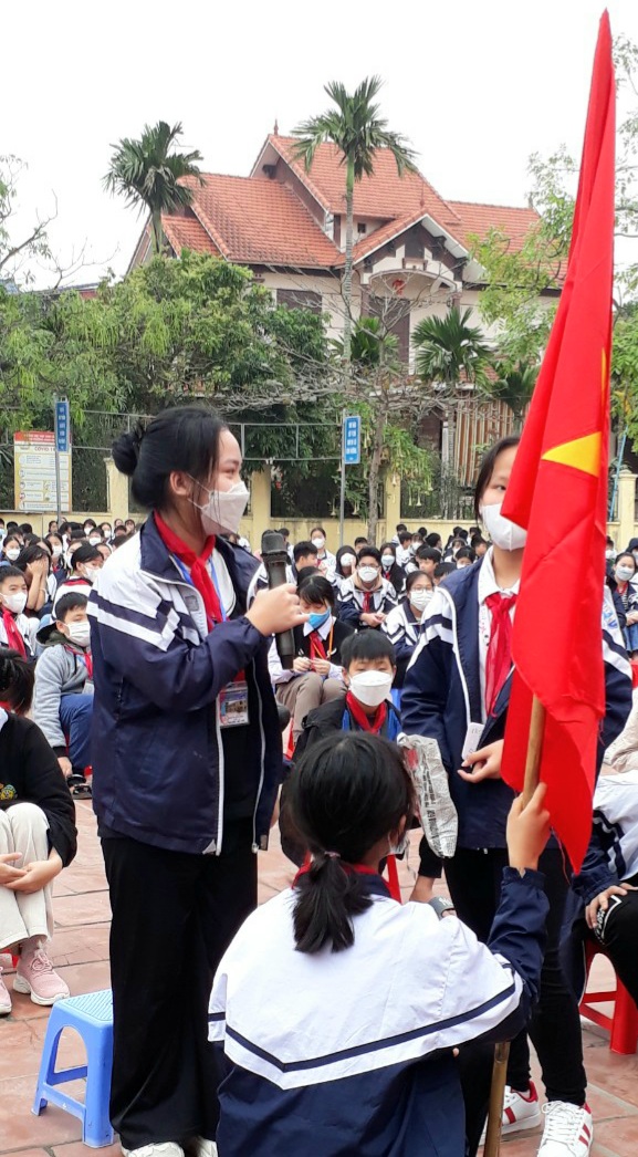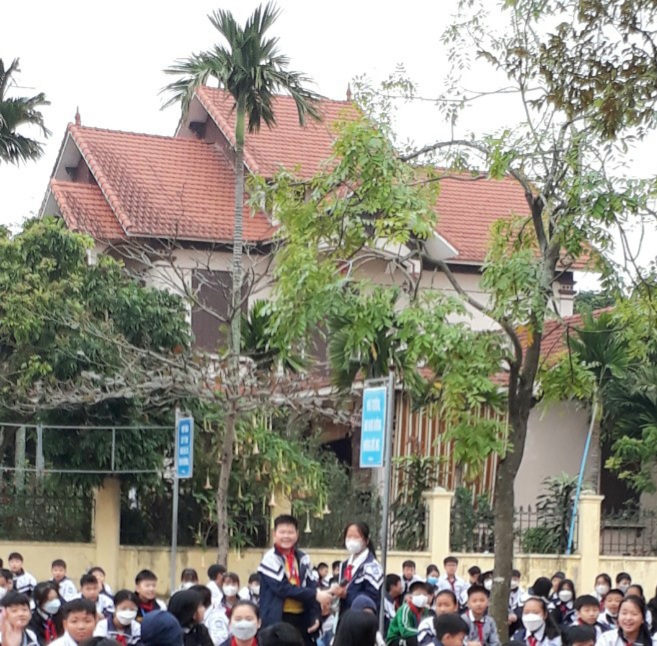 Cũng trong tiết sinh hoạt này, đại diện Nhà trường và Liên đội, cô giáo Phạm Thị Yến đã tuyên dương và khen tặng 3 lớp xuất sắc nhất là 6A, 6B, 9B trong hoạt động “Mừng tuổi” sách cho thư viện nhà trường đã được phát động hưởng ứng chào mừng ngày thành lập Đảng 3/2 và mừng Xuân 2023.