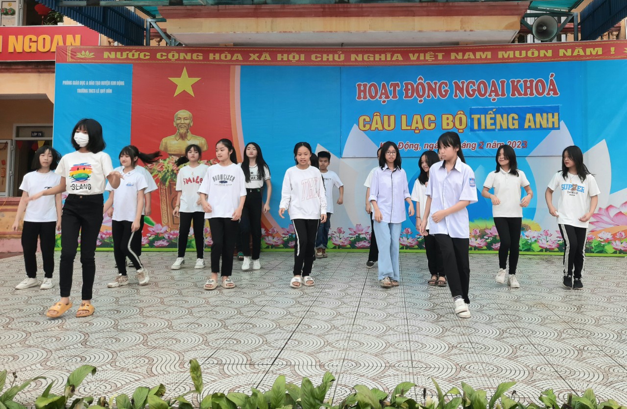 Dù thời gian để chuẩn bị, luyện tập không có nhiều, và chỉ diễn ra trong gần 1 tiết học, nhưng các em học sinh trong CLB Tiếng Anh khối 6,7 đã tạo được một buổi sinh hoạt sôi nổi, mang màu sắc đặc trưng của bộ môn ngoại ngữ thú vị qua các tiết mục: 1) Nhảy hiện đại rất đáng yêu của các em CLB Anh 6. 2) Phần thuyết trình tiếng Anh của em Thu Hương lớp 6B về chủ đề Safe the Environment. 3) Tiết mục nhảy liên khúc hiện đại – Mashup: Lonely, Seven Rings, Way Back Home, My Money do nhóm CLB Anh 7 biểu diễn. 4) Phần thuyết trình Tiếng Anh của em Hà Linh lớp 7C về chủ đề Thủ đô Hà Nội. 5) Giao lưu với học sinh toàn trường bằng các câu đố vui Tiếng Anh thú vị.