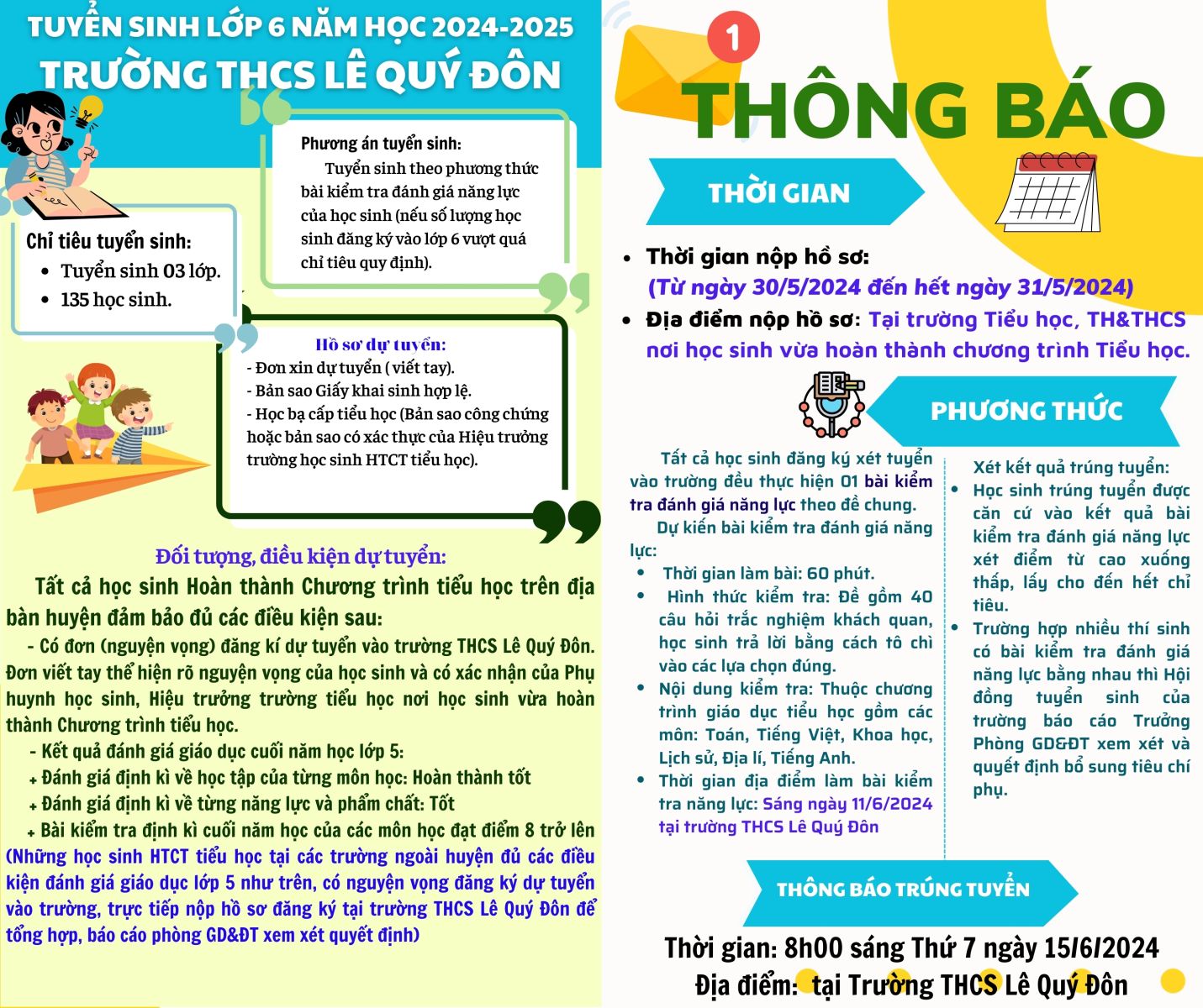 KẾ HOẠCH TUYỂN SINH VÀO LỚP 6 NĂM HỌC 2024 - 2025