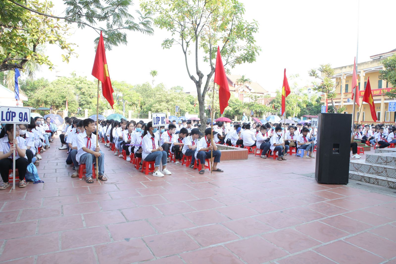 Mở đầu lễ Khai giảng là màn chào đón học sinh lớp 6 được thực hiện trong không khí trang trọng, vui tươi, ghi dấu kỉ niệm thiêng liêng khó quên đối với các em học sinh đầu cấp.