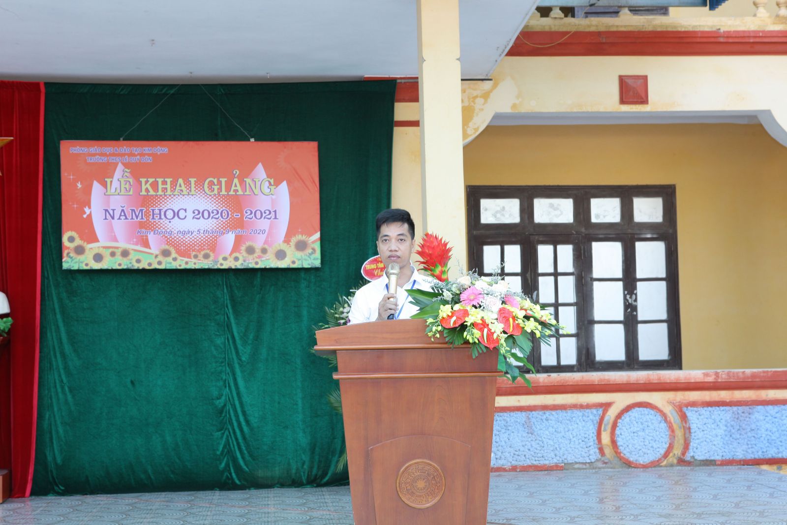 Tại lễ Khai giảng, thầy Lê Văn Trí – Phó hiệu trưởng nhà trường – đã đọc thư của Tổng bí thư, Chủ tịch nước Nguyễn Phú Trọng. Trong thư, Tổng Bí thư không chỉ gửi những tình cảm yêu quý và lời chúc tốt đẹp nhất dành cho các thầy, cô giáo, cán bộ quản lí, các học sinh, sinh viên trên cả nước mà còn mong muốn tất cả hãy phát huy truyền thống tốt đẹp, nuôi dưỡng sự nhiệt tình sáng tạo trong dạy và học.