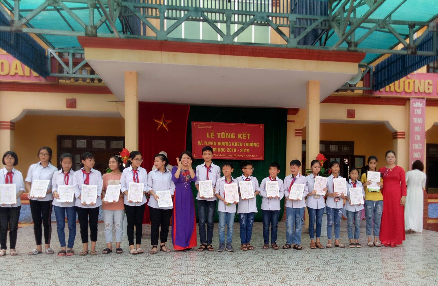 Trọng tâm của buổi tổng kết là lễ tuyên dương khen thưởng hết sức trang trọng dưới sự ghi nhận chứng kiến của đồng chí Trưởng phòng GD –ĐT Kim Động, của đại diện UBND thị trấn Lương Bằng về những thành tích dạy – học của thày và trò trong các cuộc thi, hoạt động phong trào, trong học tập rèn luyện.