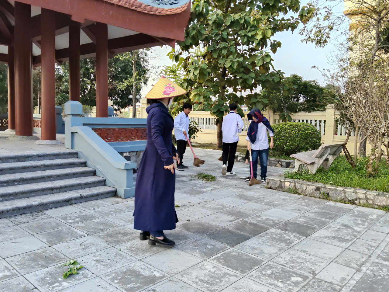 Mở đầu cho chuỗi hoạt động ý nghĩa là công tác chăm sóc và viếng Đài tưởng niệm các anh hùng liệt sĩ tại địa phương. Ngay từ chiều ngày 21 tháng 12, đại diện Ban giám hiệu, các thầy cô giáo và các em học sinh đã có mặt để tiến hành dọn dẹp vệ sinh khuôn viên đài tưởng niệm. Từng chiếc lá được quét dọn, từng bậc thềm, bia ghi danh được các em học sinh lau chùi cẩn thận bằng tất cả lòng thành kính.