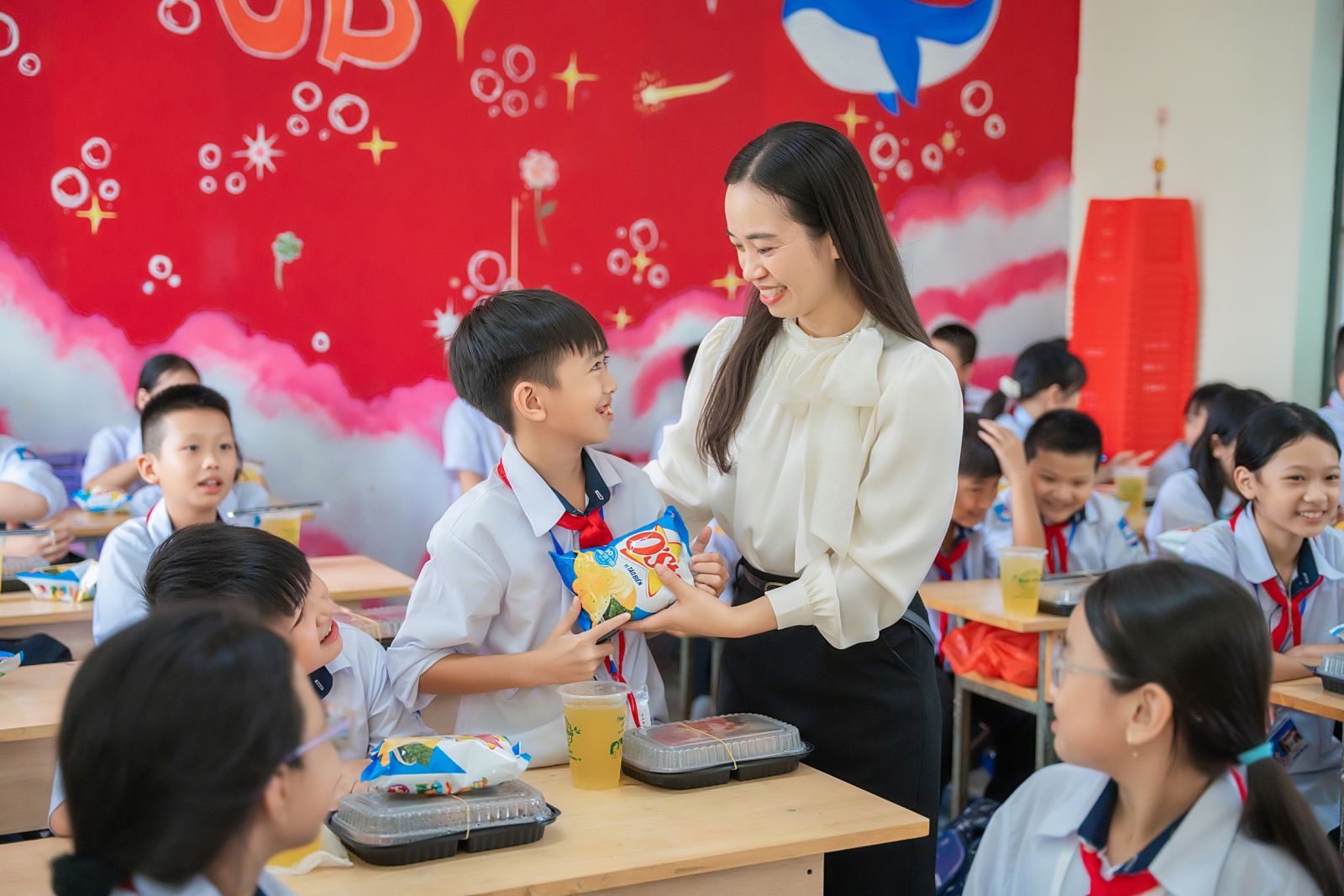 Gửi đến thầy cô giáo, những người lái đò thầm lặng đã trao truyền không chỉ kiến thức mà còn cả những bài học về tình người. Chúng con biết, để có một rằm tháng Tám trọn vẹn tiếng cười, thầy cô đã dành biết bao tâm huyết, chuẩn bị từng chiếc bánh, từng trò chơi, để sưởi ấm tâm hồn chúng con giữa bộn bề sách vở. Mỗi nụ cười của thầy cô lúc này chính là phần thưởng vô giá, là động lực để chúng con cố gắng học tập và trưởng thành.