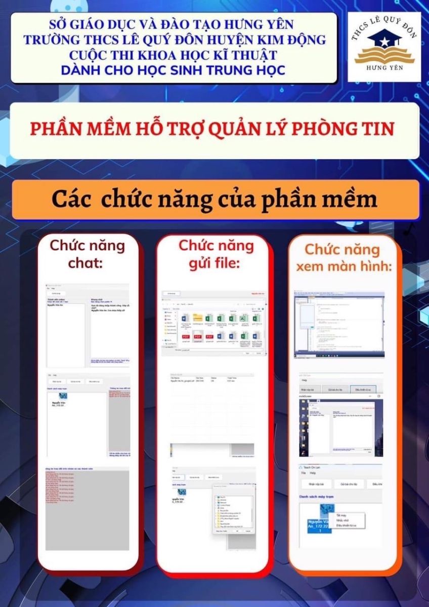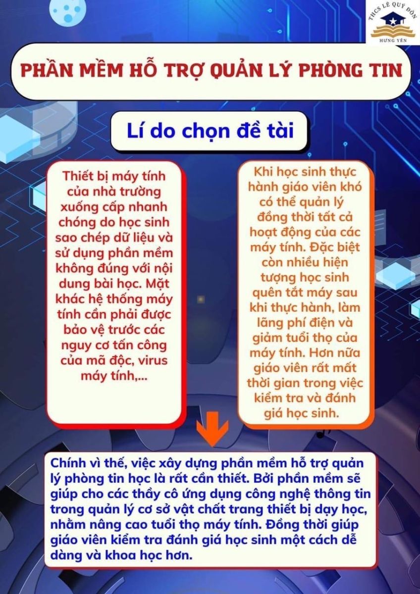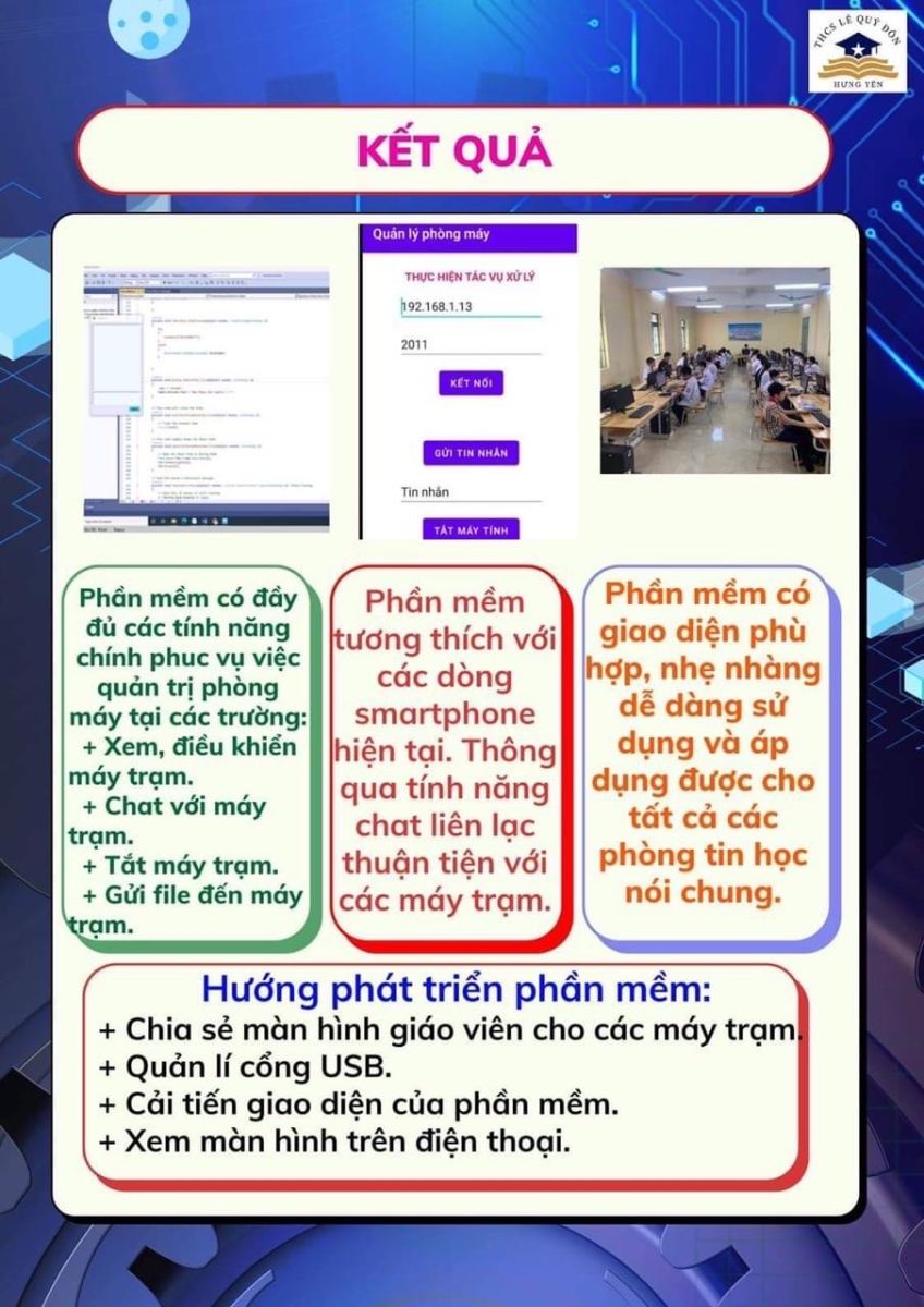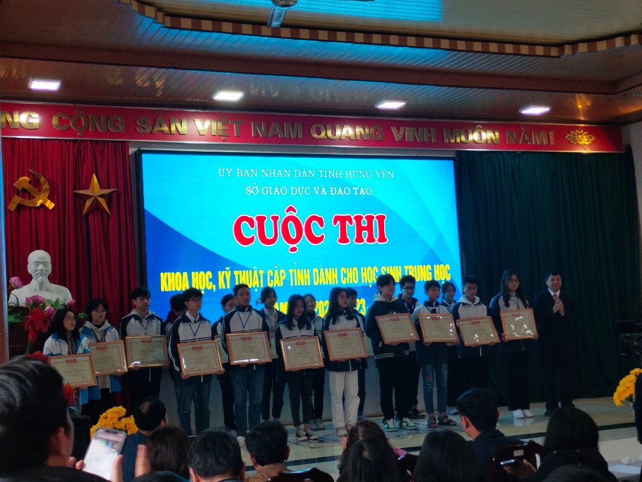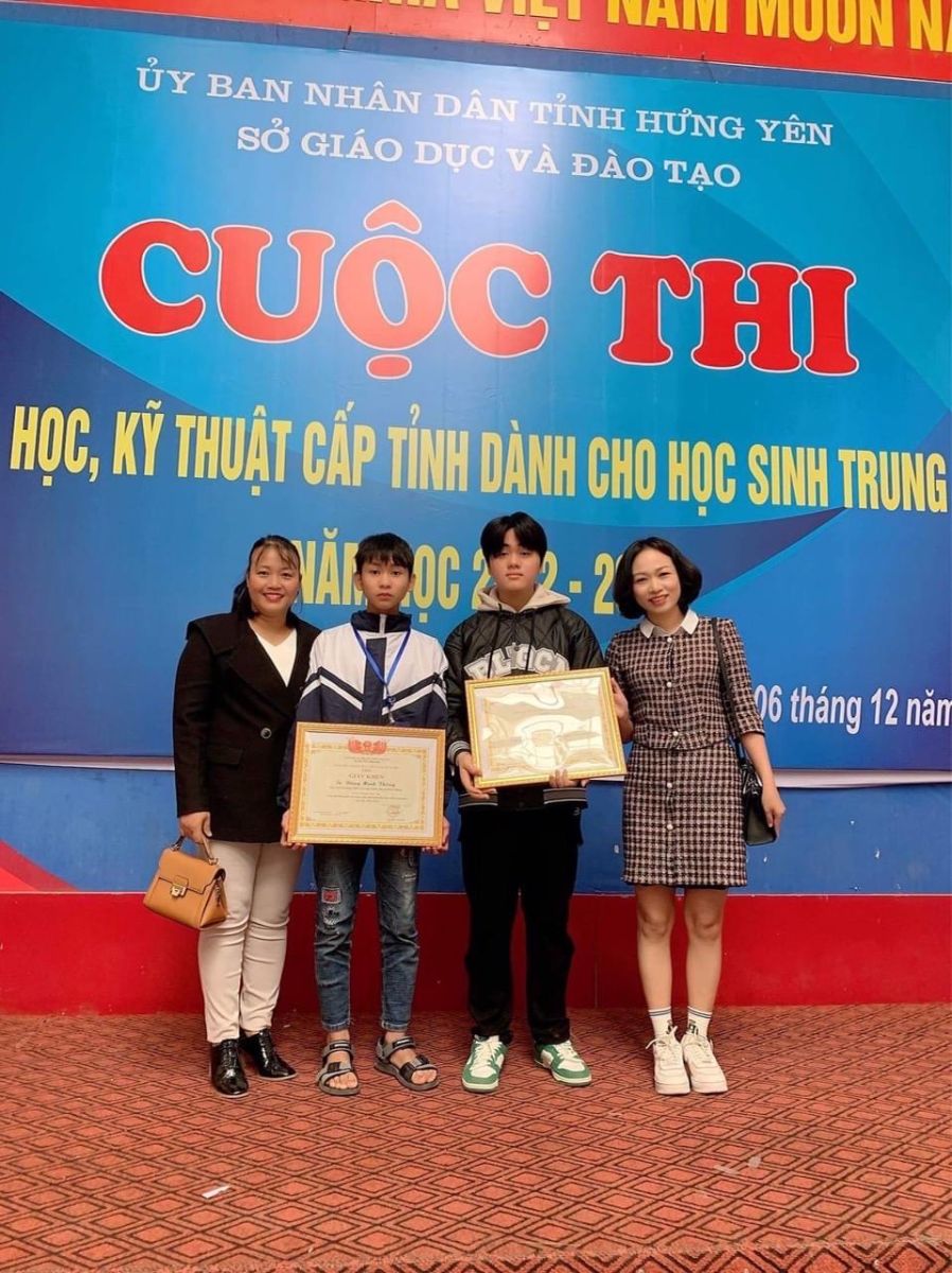 Sau 3 ngày diễn ra Cuộc thi, sáng ngày 06/12/2022, tại Hội trường lớn trường THPT chuyên Hưng Yên, Sở GD-ĐT Hưng Yên đã tổ chức tổng kết cuộc thi và tổ chức trao giải cho các dự án đạt giải nhất, nhì, ba, tư. Dự án " Phần mềm hỗ trợ quản lý phòng tin" của học sinh Nguyễn Toàn Thắng lớp 9B và học sinh Đặng Minh Thông lớp 8A dưới sự hướng dẫn của giáo viên Nội Thanh Hoa đã thể hiện xuất sắc bài dự thi của mình: Đạt giải Ba cấp tỉnh. Sau đây là một số hình ảnh của cô trò tại Cuộc thi: