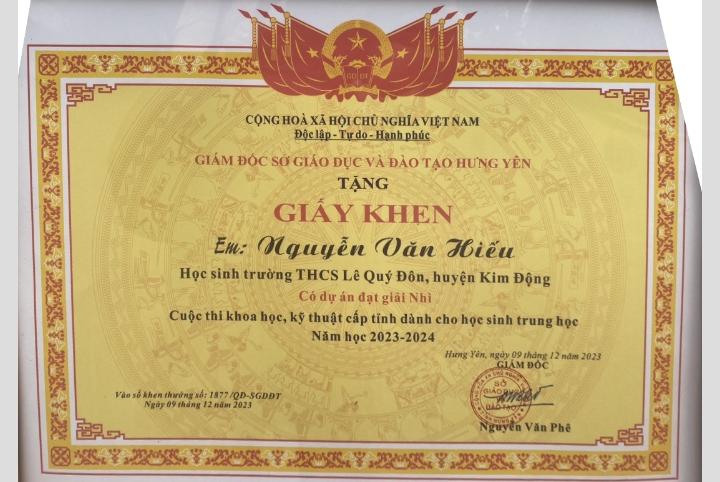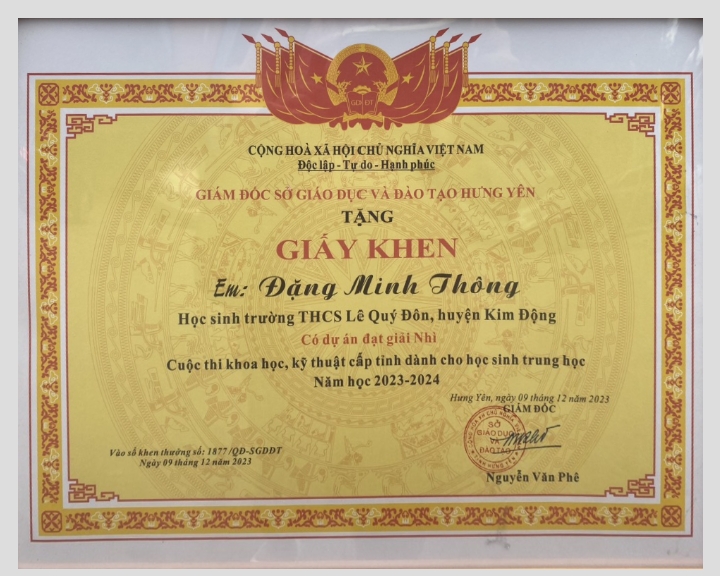 THCS LÊ QUÝ ĐÔN – KIM ĐỘNG XUẤT SẮC ĐẠT GIẢI NHÌ TRONG CUỘC THI NGHIÊN CỨU KHOA HỌC CẤP TỈNH