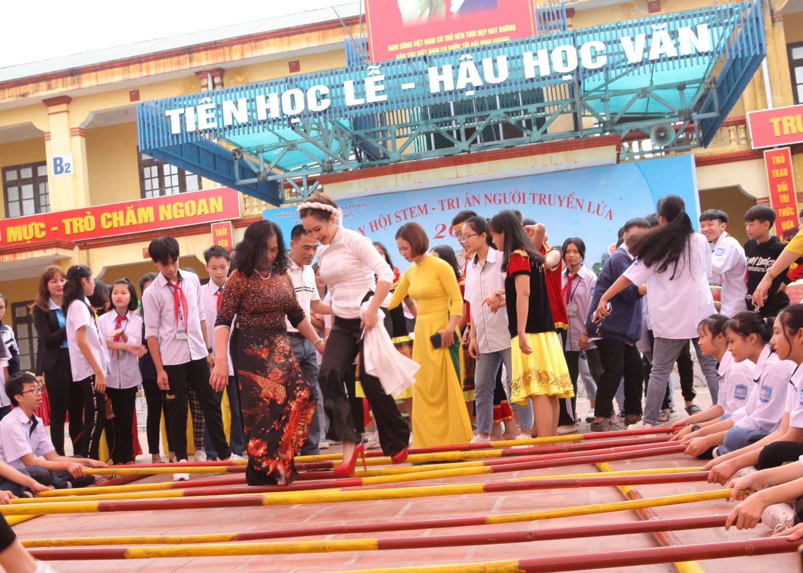 Không thể thiếu được trong sự kiện trọng đại này là các tiết mục văn nghệ của thày và trò được đan cài xuyên suốt chương trình tạo không khí nghệ thuật đem lại bao cung bậc cảm xúc cho ngày hội. Đặc sắc nhất là hoạt động trải nghiệm múa Sạp của lớp 9B, đã làm nóng cả ngày Hội, là dịp để cả thầy trò và khách mời được sống với không gian nghệ thuật Tây Bắc độc đáo, tạo dư âm thú vị cho các hoạt động trải nghiệm Stem sau đó.