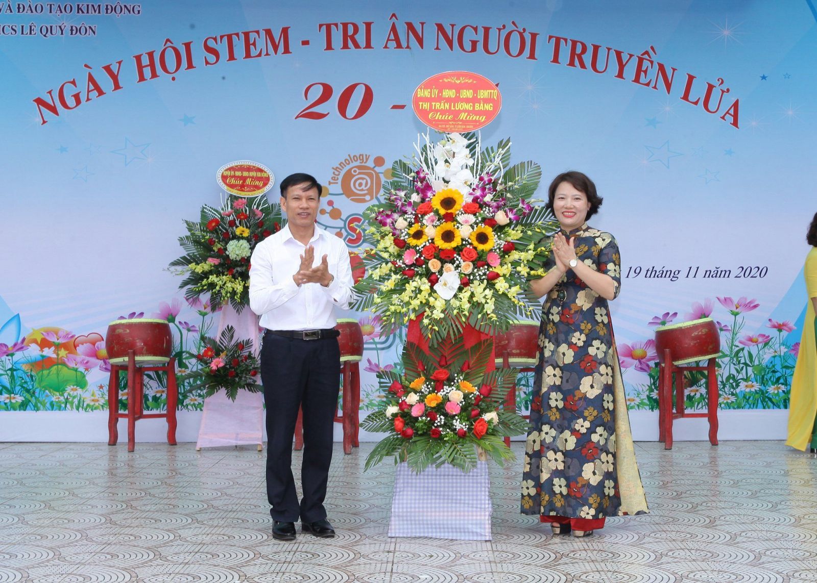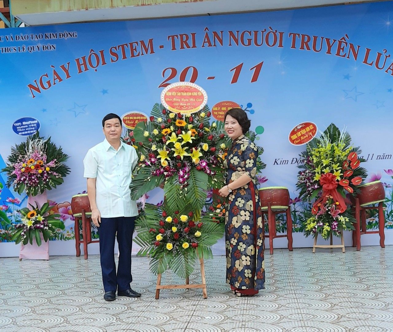 Ngày hội Stem – Tri ân người truyền lửa của trường THCS Lê Quý Đôn được vinh dự chào đón ông Nguyễn Hùng Nam – Tỉnh ủy viên, Bí thư Huyện ủy, bà Vũ Thị Chanh - Ủy viên BTV, Phó chủ tịch Thường trực UBND huyện Kim Động, các đồng chí đại diện Đảng Ủy – HĐND – UBND thị trấn Lương Bằng, bà Hoàng Thị Thu Phương – Huyện ủy viên, Trưởng phòng giáo dục và đào tạo Kim Động, các thày cô đã nghỉ hưu và đã từng công tác tại trường, Hội cha mẹ học sinh, các doanh nghiệp trên địa bàn huyện Kim Động, tỉnh Hưng Yên đến chúc mừng, động viên thầy trò nhà trường.