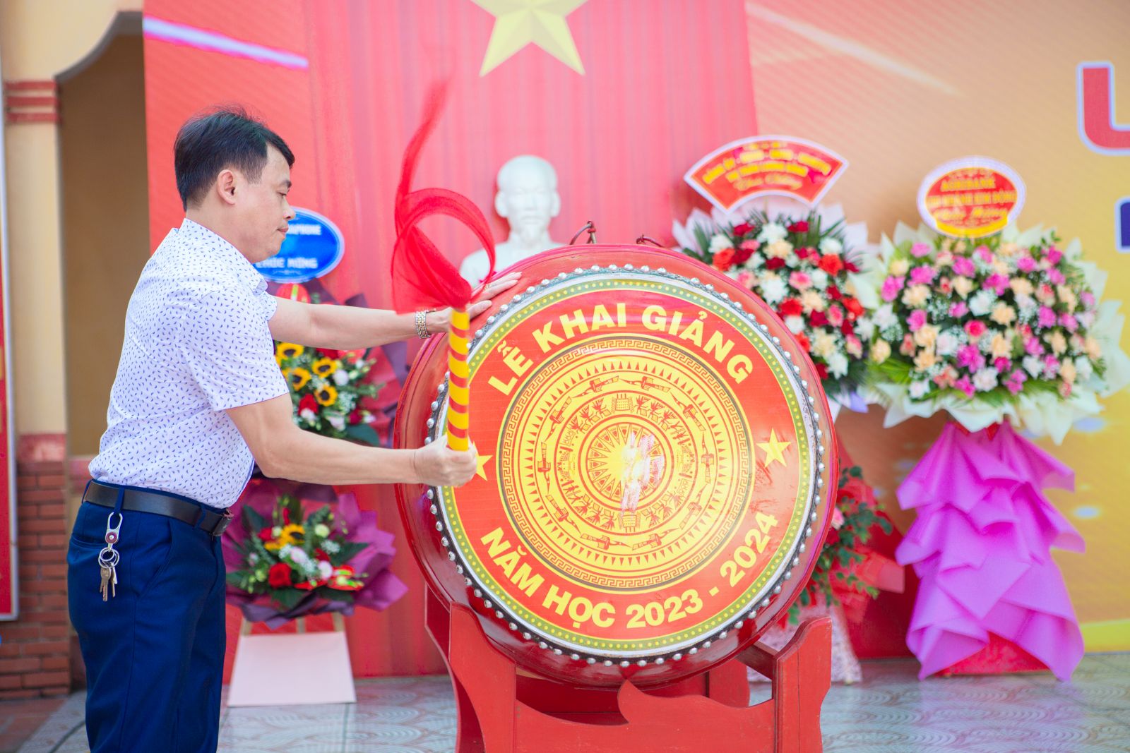 Giây phút thiêng liêng, lắng đọng trong Lễ khai giảng còn là tiếng trống khai trường rộn vang đầy cảm xúc. Tiếng trống vang lên lúc thong thả lúc dồn dập như lời thúc giục cả thầy và trò nhà trường về trọng trách, nhiệm vụ thiêng liêng của mình, hăng say thi đua dạy tốt, học tốt, đưa chuyến đò năm học 2023 – 2024 cập bến an toàn.