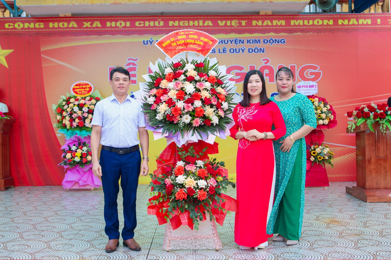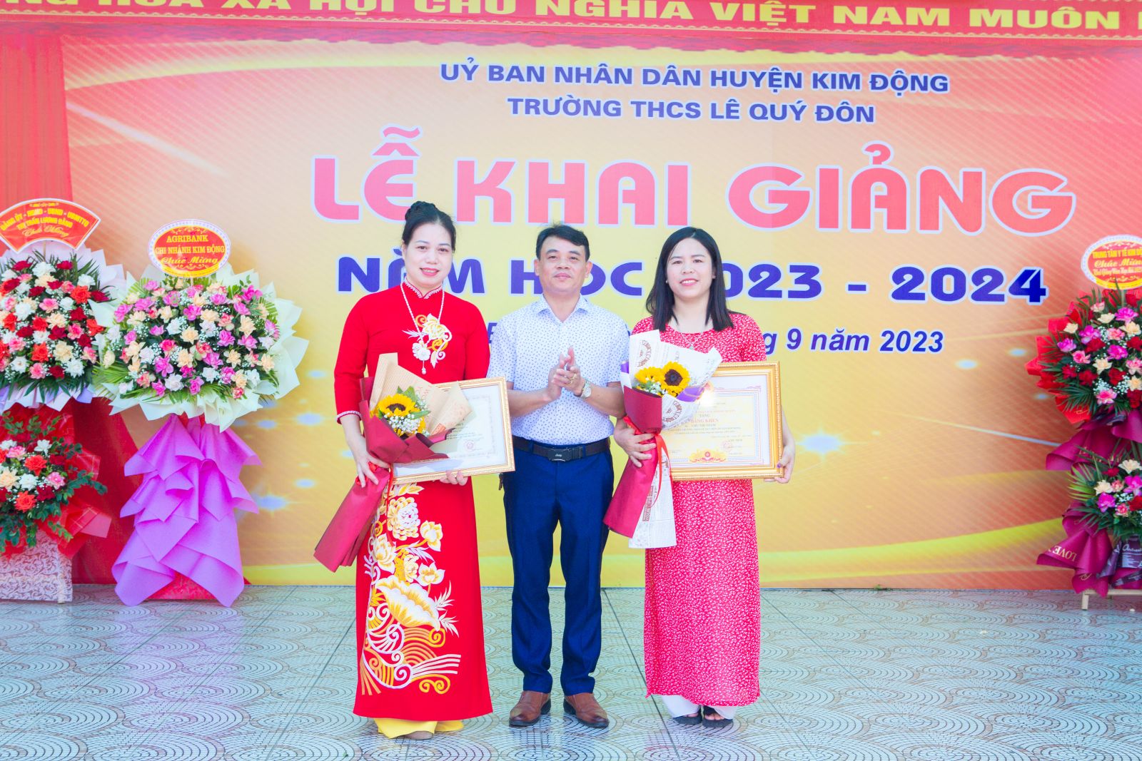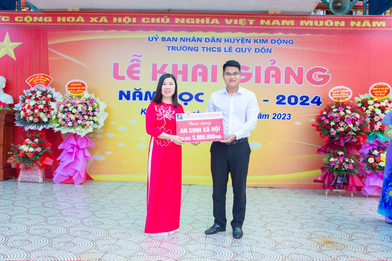 Trong ngày hội khai trường, thầy trò nhà trường còn vinh dự được Ngân hàng NN và PTNN chi nhánh Kim Động tài trợ, ủng hộ cho quỹ khuyến học của nhà trường; các em học sinh được chứng kiến màn vinh danh trao thưởng đầy ý nghĩa cho các thầy cô, các em học sinh đã được nhận bằng khen, giấy khen về thành tích đạt được trong năm học trước; được thưởng thức những tiết mục văn nghệ đặc sắc của thầy cô và học sinh trong một không khí vui tươi, thư giãn.