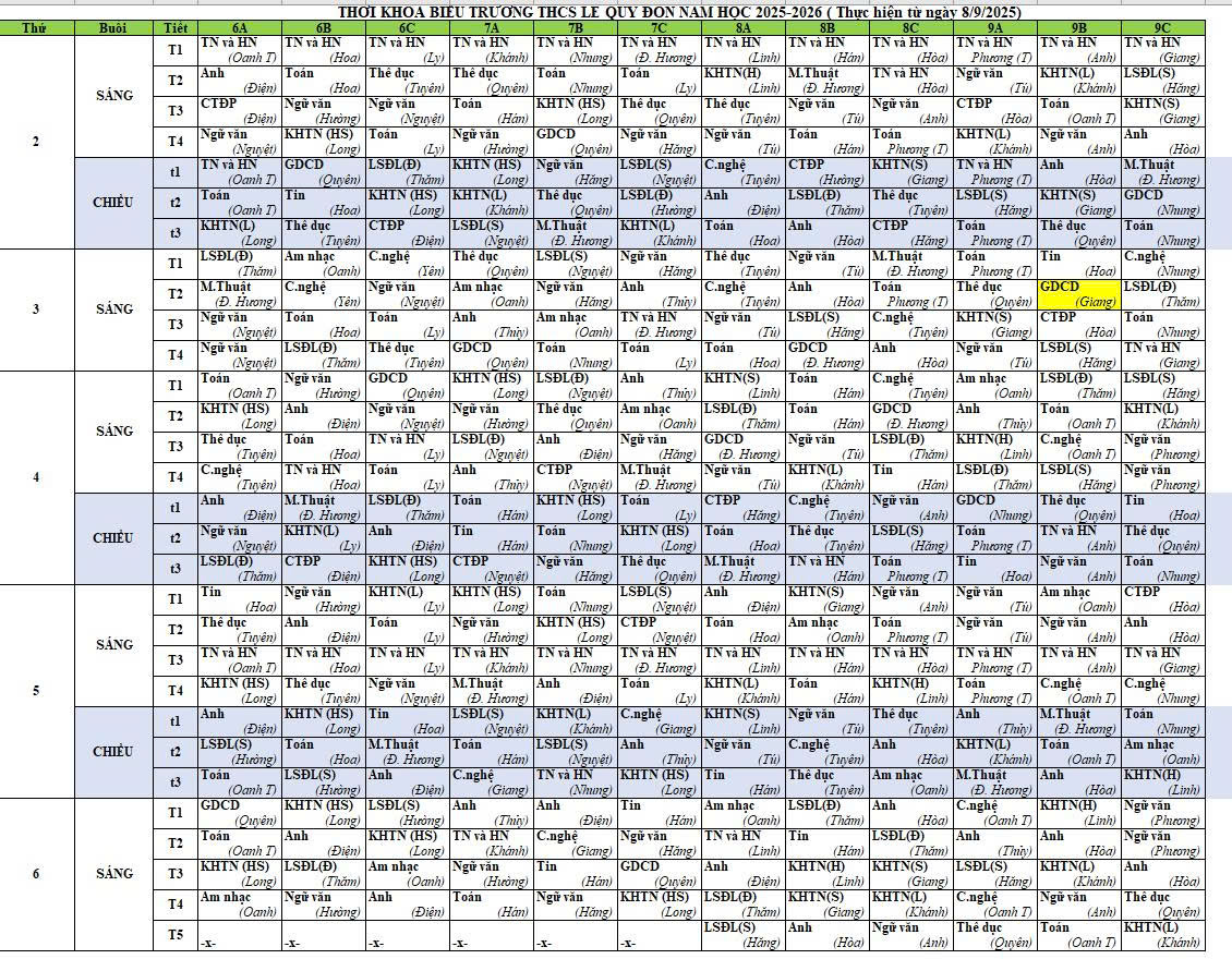 Thời khóa biểu toàn trường thực hiện từ 06/10/2025(05/10/2025)