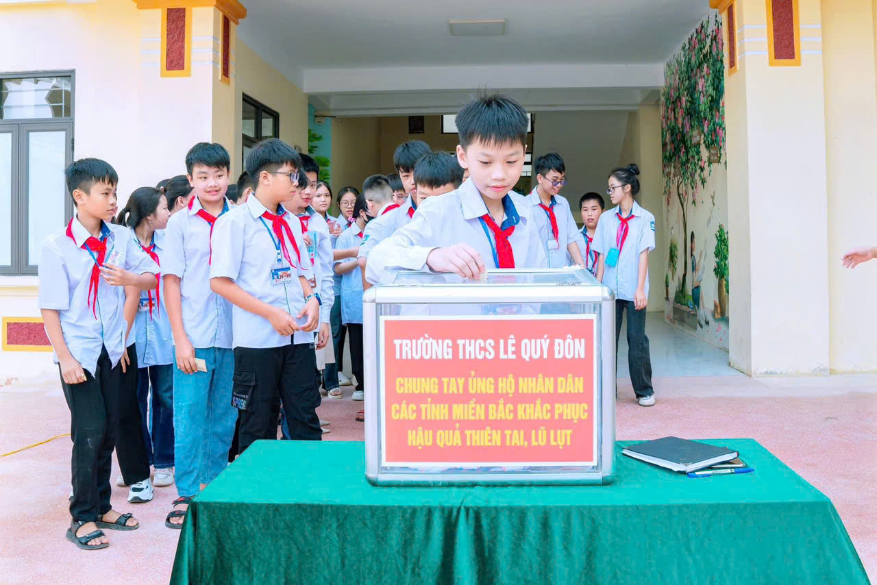 TRƯỜNG THCS LÊ QUÝ ĐÔN CHUNG TAY ỦNG HỘ ĐỒNG BÀO BỊ LŨ LỤT DO BÃO YAGI