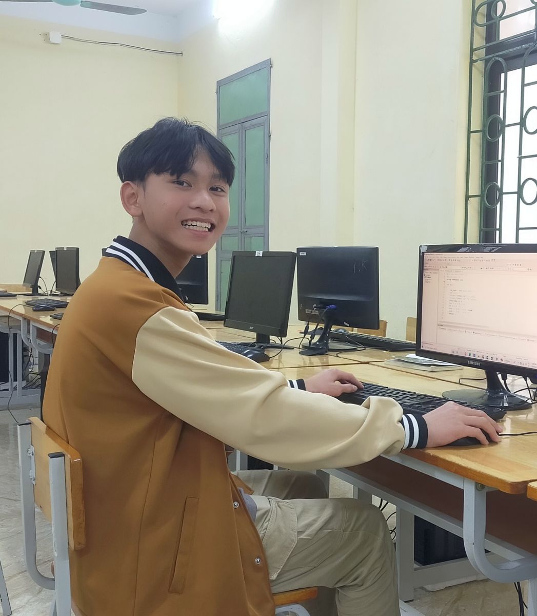 Em: Đặng Minh Thông lớp 9A đạt giải nhất môn Tin học.