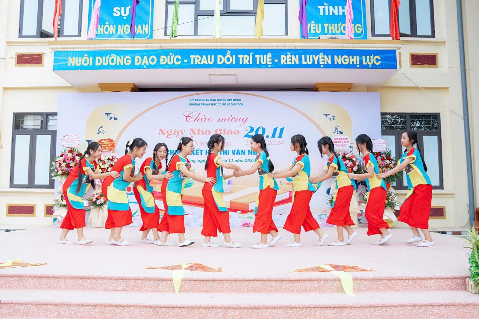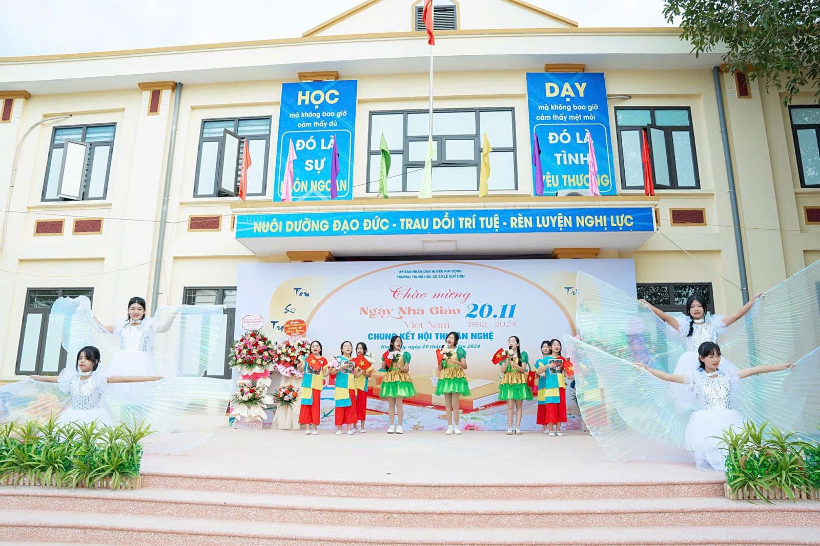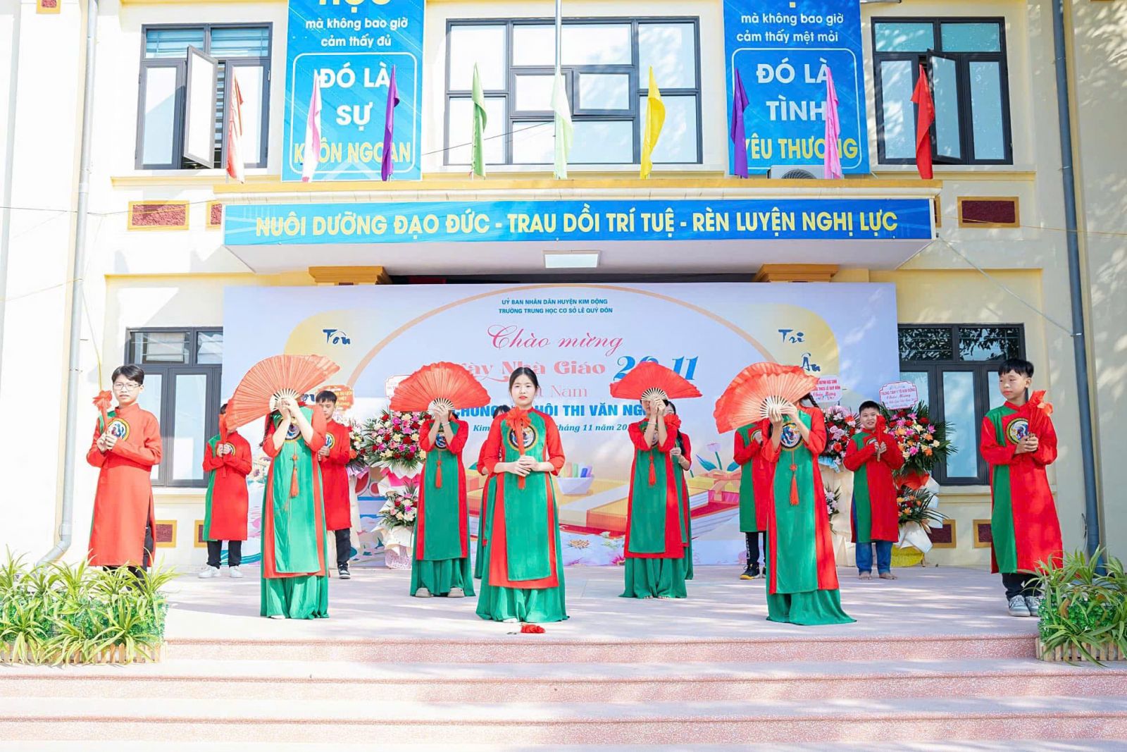 Với chủ đề “ Hội diễn văn nghệ chào mừng ngày Nhà giáo Việt Nam” , phong trào văn nghệ đã được khơi dậy từ nhiều tuần trước đó và nhận được sự tham gia nhiệt tình, đầy quyết tâm của các em học sinh khối lớp 6,7,8. Vòng sơ khảo diễn ra trong ngày 19/11/2024 với 9 tiết mục vô cùng đặc sắc, mỗi tiết mục mang một màu vẻ khác nhau nhưng đều chung một tinh thần tri ân thầy cô, tri ân tổ quốc đầy ý nghĩa. Ban giáo khảo đã lựa chọn được 5 tiết mục xuất sắc nhất để vào chung kết trình diễn trong lễ kỉ niệm ngày 20/11. 5 tiết mục ( gồm 1 giải Nhất, 1 giải Nhì, 3 giải Ba) đã làm bùng nổ sân khấu của buổi lễ kỉ niệm bởi sự dàn dựng công phu, trình diễn xuất sắc, nội dung thấm thía, ý nghĩa và xúc động.