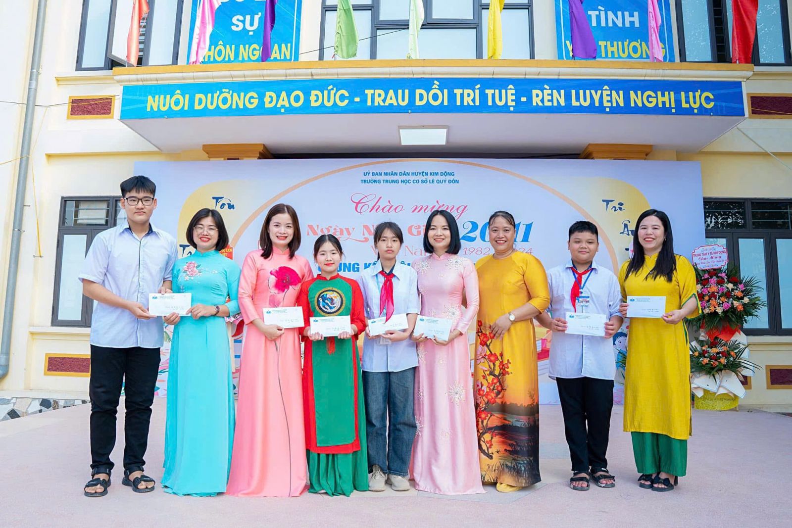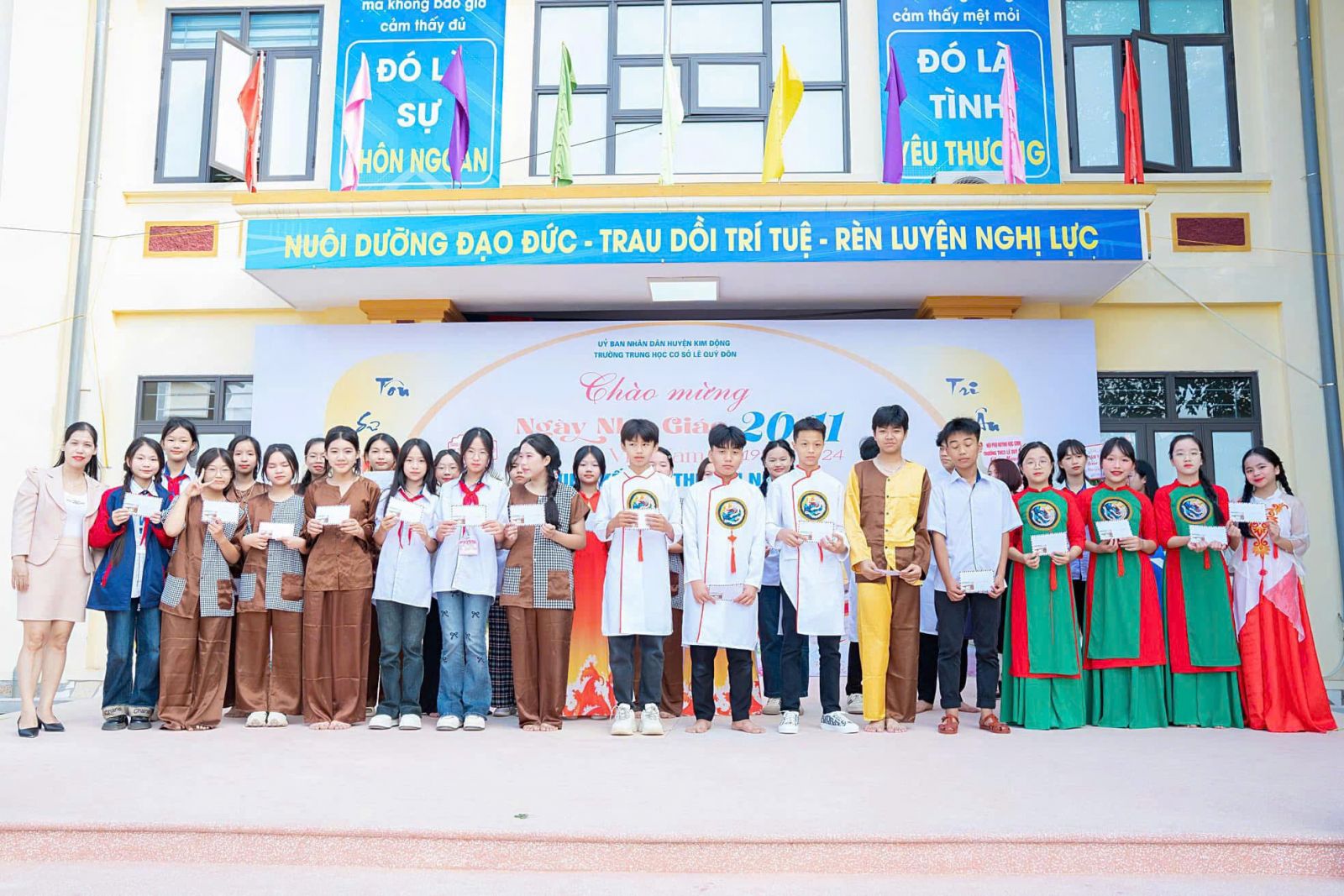 Về dự lễ kỉ niệm có ông Lê Hồng Dơn – Chủ tịch Hội khuyến học huyện Kim Động, ông Đỗ Trung Đoàn – Phó Bí thư Đảng ủy Thị trấn Lương Bằng cùng với các ông bà đại diện lãnh đạo các cơ quan, doanh nghiệp trên địa bàn huyện Kim Động; các ông bà trong Ban đại diện hội cha mẹ học sinh, các thầy cô giáo đã nghỉ của nhà trường. Cùng với sự hiện diện các đại biểu đã dành tặng cho thầy cô giáo trường THCS Lê Quý Đôn những lặng hoa tươi thắm, sự ghi nhận và những lời chúc mừng tốt đẹp nhất.