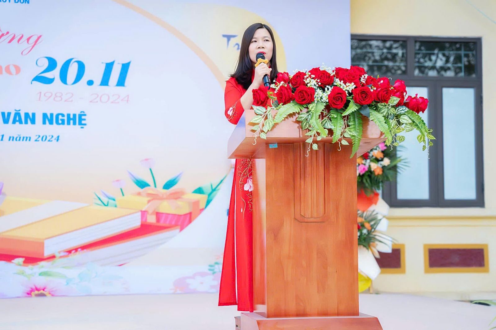 Trong diễn văn kỉ niệm cô Phạm Thị Yến – Bí thư Chi bộ, Hiệu trưởng nhà trường không chỉ ôn lại truyền thống tôn sư trọng đạo từ ngàn đời của dân tộc Việt Nam, lịch sử và ý nghĩa ngày Nhà giáo Việt Nam 20 /11 mà còn khẳng định vai trò quan trọng của mỗi thầy cô giáo, nhiệm vụ, trách nhiệm của mỗi học sinh trong học tập cũng như rèn luyện. Trong bối cảnh mới của thời đại và nhiệm vụ giáo dục, hơn bao giờ hết tinh thần, phẩm chất, tài năng của người thầy vô cùng quan trọng, để luôn theo kịp thời đại nhưng cũng phải bảo vệ, giữ gìn và lưu truyền những giá trị văn hóa đẹp của dân tộc trong tâm hồn của thế hệ chủ nhân tương lai.
