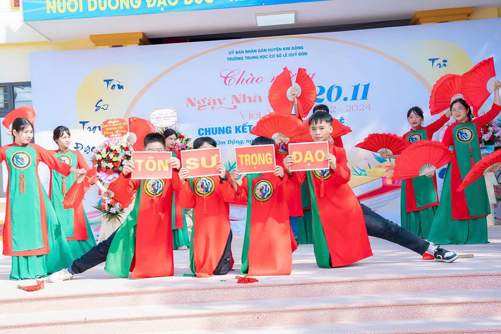 Sáng ngày 20/11/2024, với tinh thần phát huy truyền thống tôn sư trọng đạo của dân tộc, đồng thời để giáo dục các em học sinh về tình cảm uống nước nhớ nguồn, tri ân thầy cô giáo và khuấy động các phong trào học tập, rèn luyện trong nhà trường, trường THCS Lê Quý Đôn đã tưng bừng tổ chức kỉ niệm ngày Nhà giáo Việt Nam 20 – 11 với sự tham gia của đông đảo đại biểu, cán bộ, giáo viên, nhân viên và toàn thể các em học sinh.