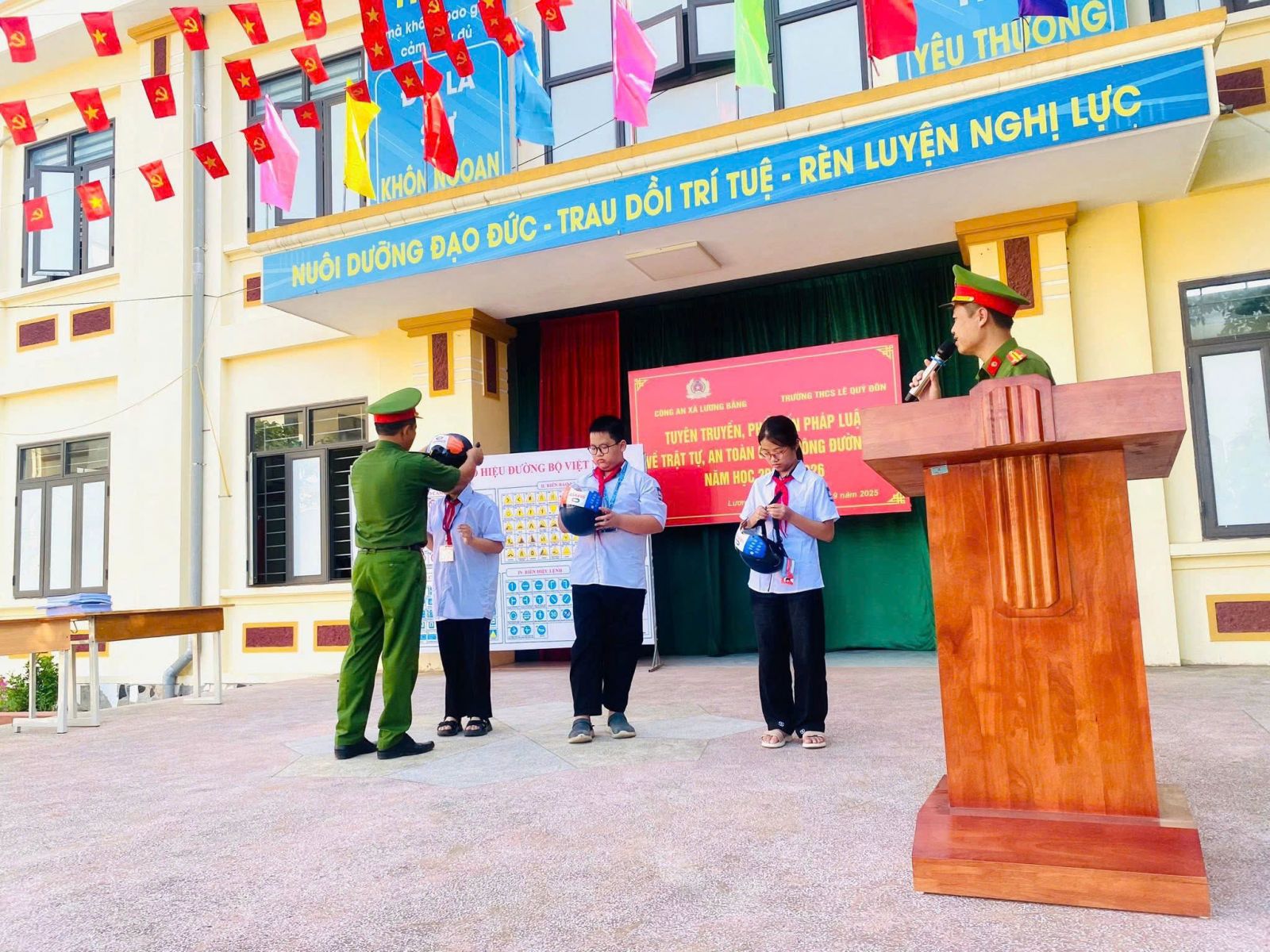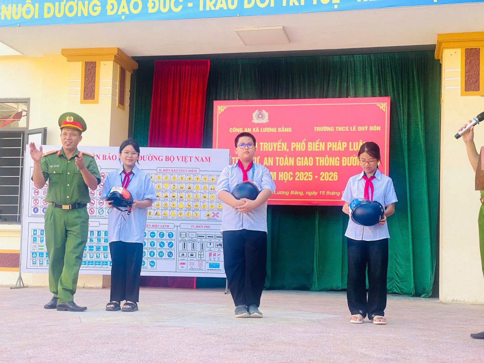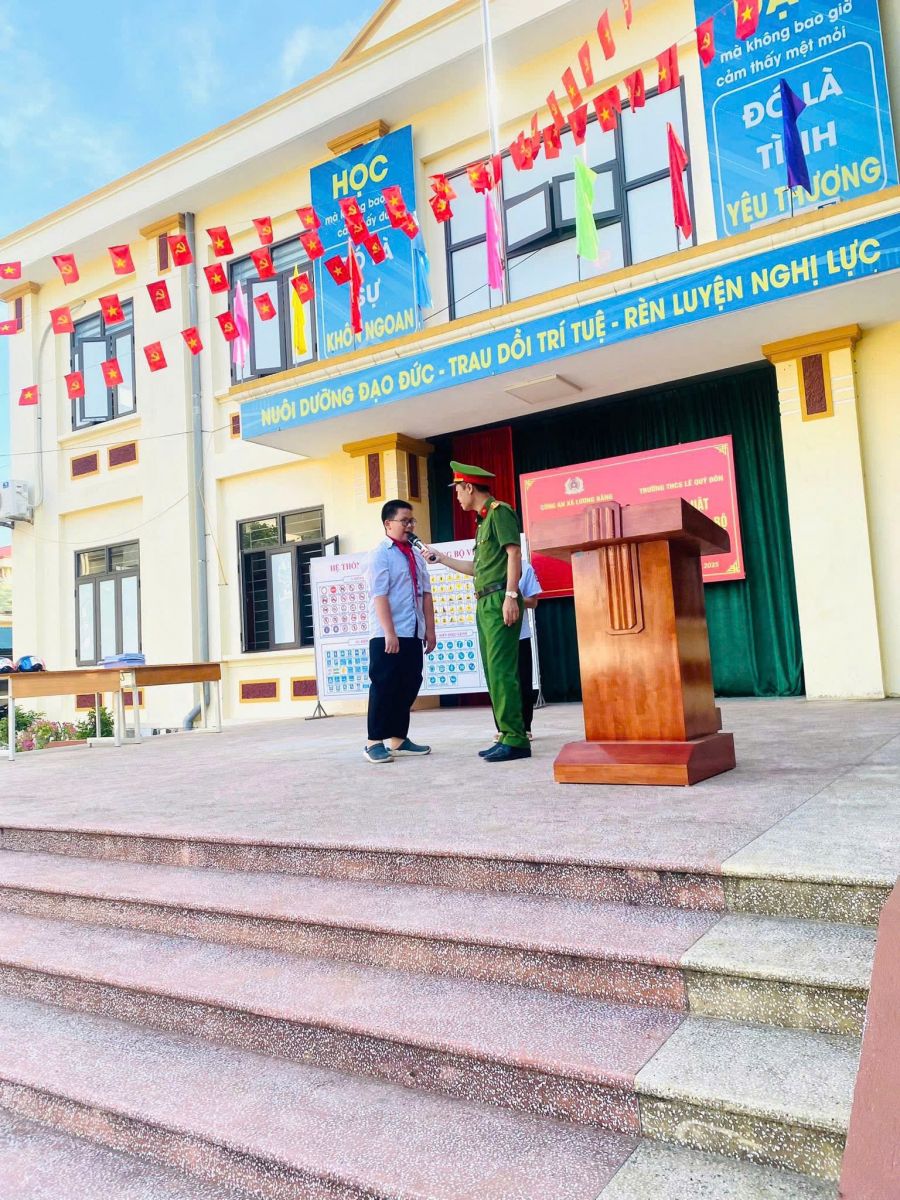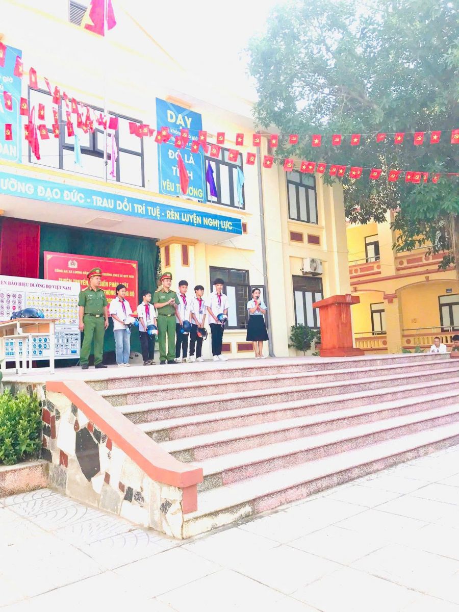 TRƯỜNG THCS LÊ QUÝ ĐÔN PHỐI HỢP VỚI CÔNG AN XÃ LƯƠNG BẰNG TUYÊN TRUYỀN, PHỔ BIẾN PHÁP LUẬT VỀ TRẬT TỰ, AN TOÀN GIAO THÔNG ĐƯỜNG BỘ VÀ TÁC HẠI CỦA THUỐC LÁ NĂM HỌC 2026 - 2026