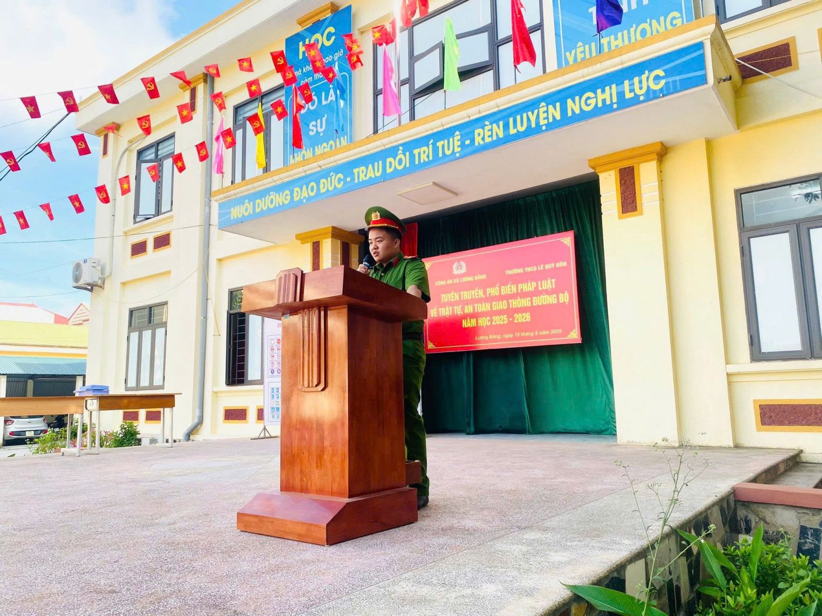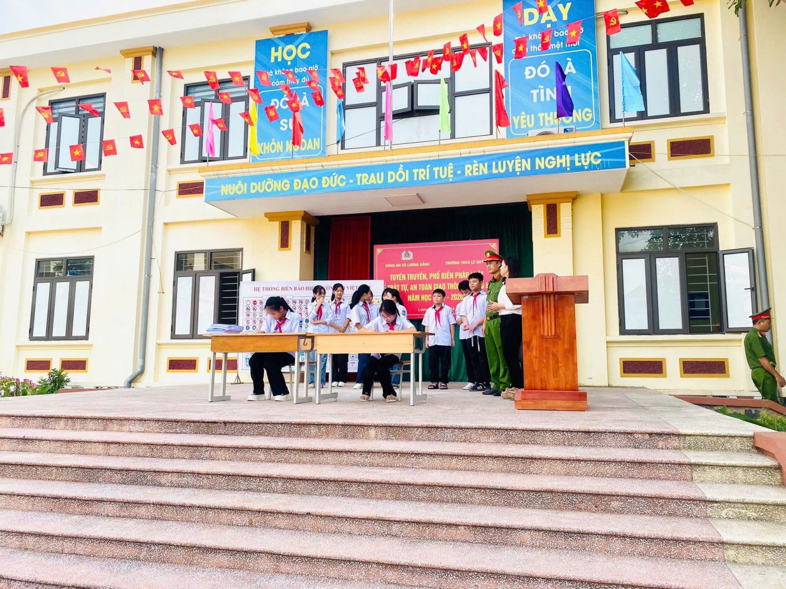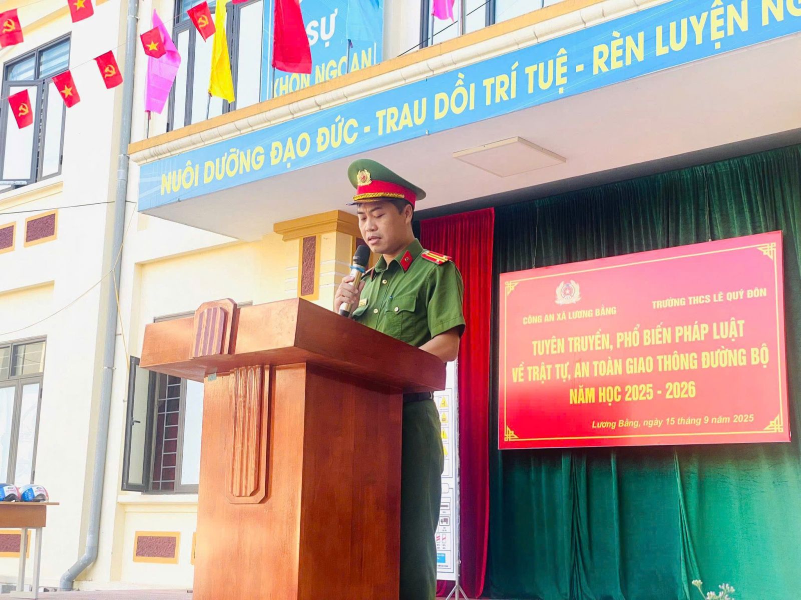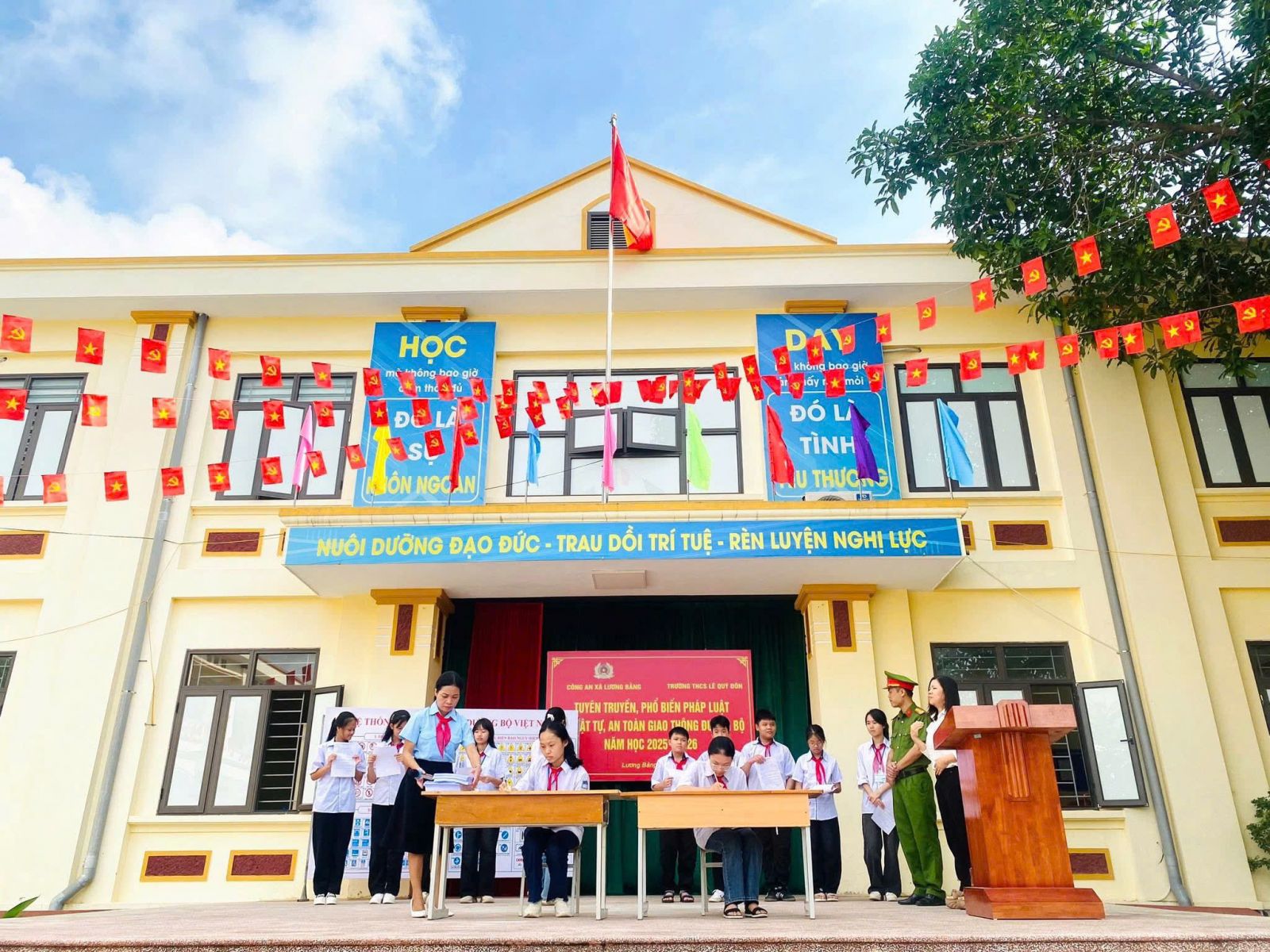 TRƯỜNG THCS LÊ QUÝ ĐÔN PHỐI HỢP VỚI CÔNG AN XÃ LƯƠNG BẰNG TUYÊN TRUYỀN, PHỔ BIẾN PHÁP LUẬT VỀ TRẬT TỰ, AN TOÀN GIAO THÔNG ĐƯỜNG BỘ VÀ TÁC HẠI CỦA THUỐC LÁ NĂM HỌC 2026 - 2026