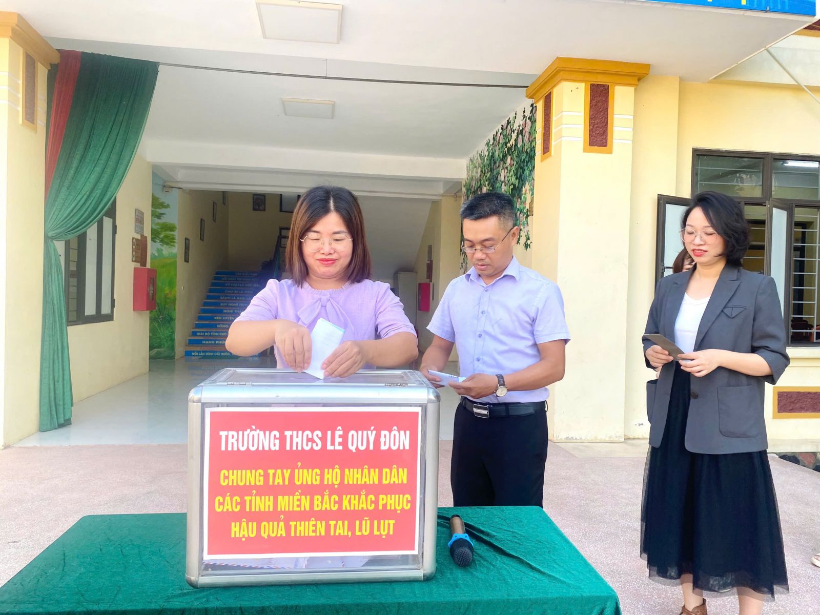 TRƯỜNG THCS LÊ QUÝ ĐÔN QUYÊN GÓP ỦNG HỘ NGƯỜI DÂN CHỊU ẢNH HƯỞNG CỦA CƠN BÃO SỐ 10