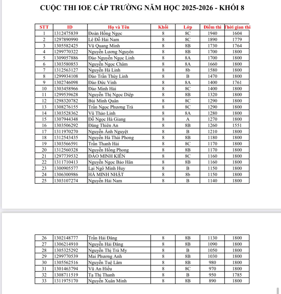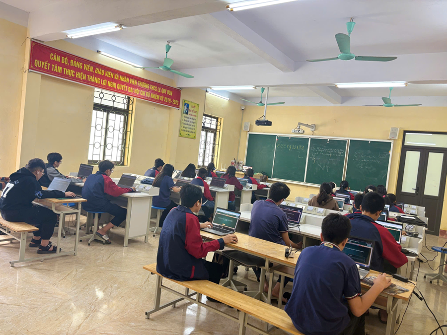 Sáng nay, ngày 27 tháng 11 năm 2025, tại phòng Tin học của Trường THCS Lê Quý Đôn, không khí học tập và thi đua trở nên sôi nổi khi hơn một trăm học sinh chính thức bước vào Kỳ thi IOE cấp trường – một sân chơi tư duy tiếng Anh trực tuyến bổ ích và đầy thử thách.