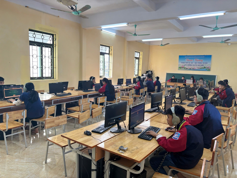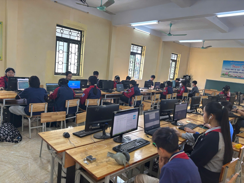 Ngay từ đầu buổi sáng, các em học sinh đã có mặt đầy đủ, ổn định chỗ ngồi và chuẩn bị tinh thần bước vào bài thi. Sự tập trung thể hiện qua từng ánh mắt, từng thao tác chuột và bàn phím của các em.